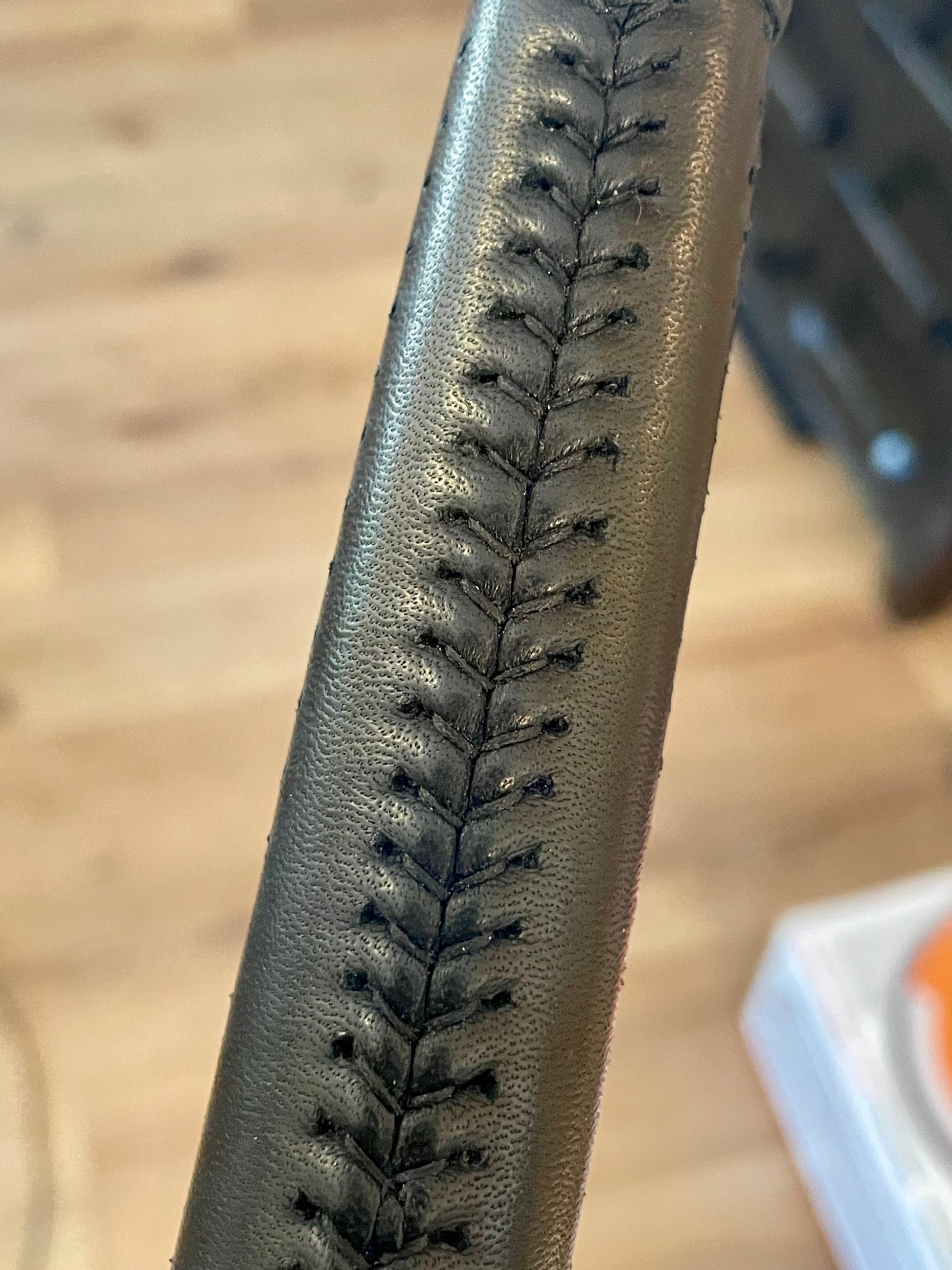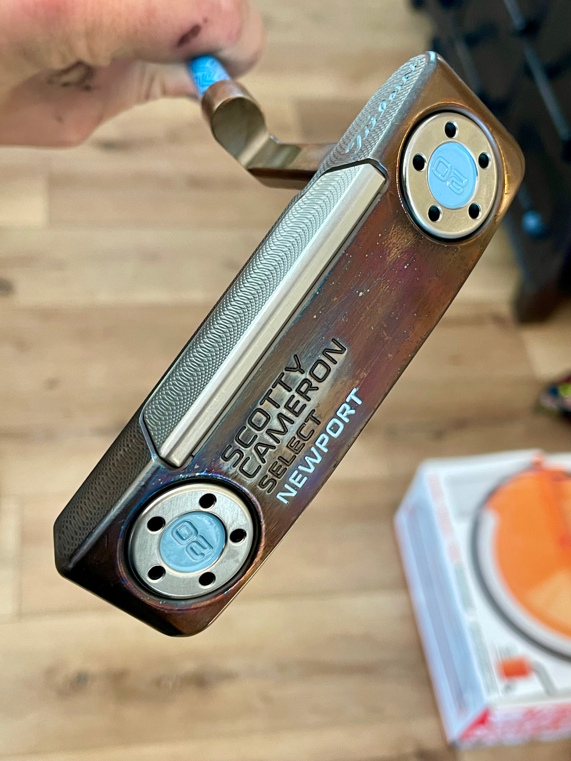 Deep oil can finish. KBS GPS 120 (graphite) shaft, gripmaster cabretta leather paddle grip. Stock cover in mint condition. Plays 34.5" - weighted a little on the heavier side to account for shaft and grip. This is an awesome setup for the money. Great one for you insert people! Black screws for a little added flare.