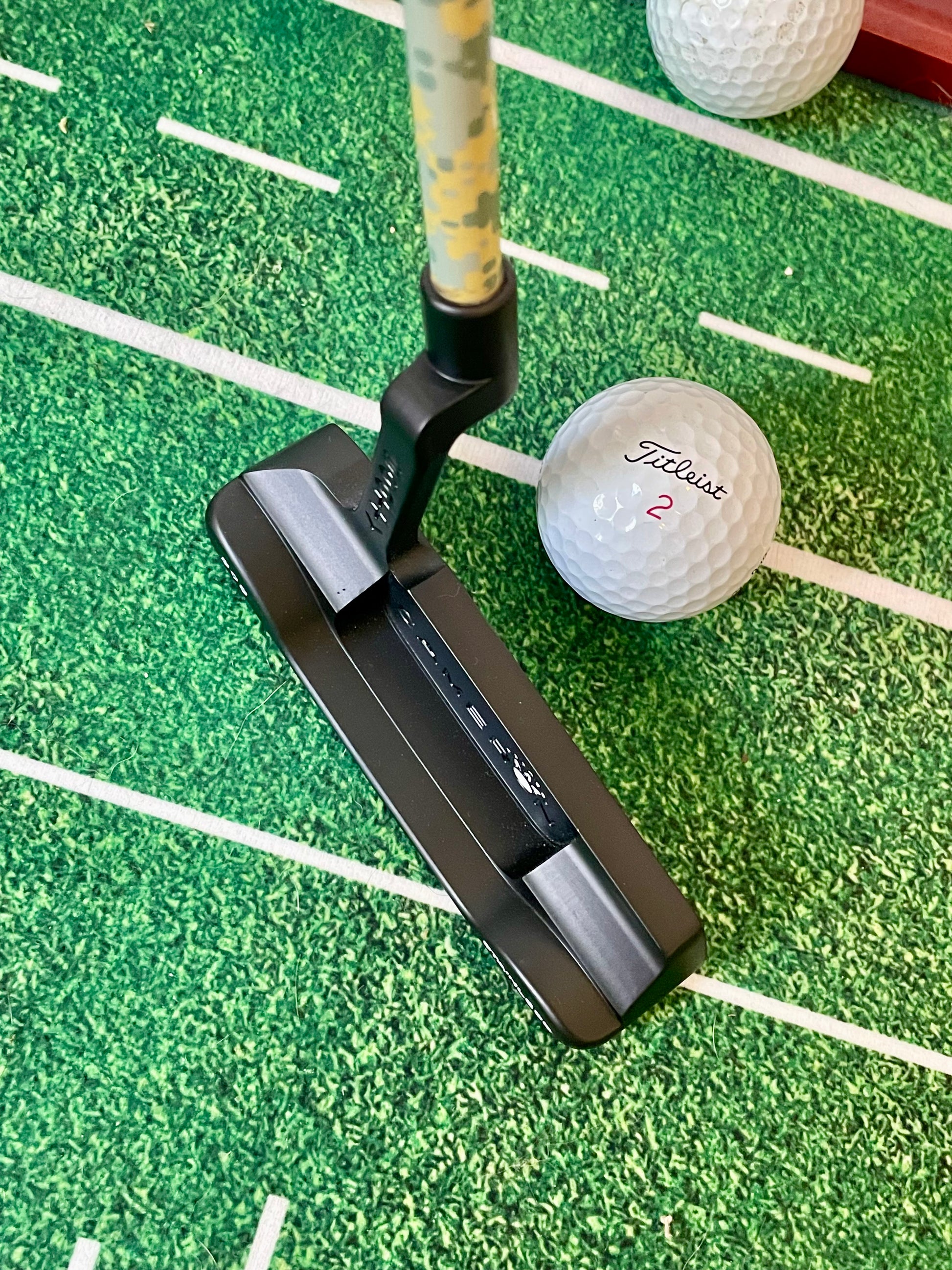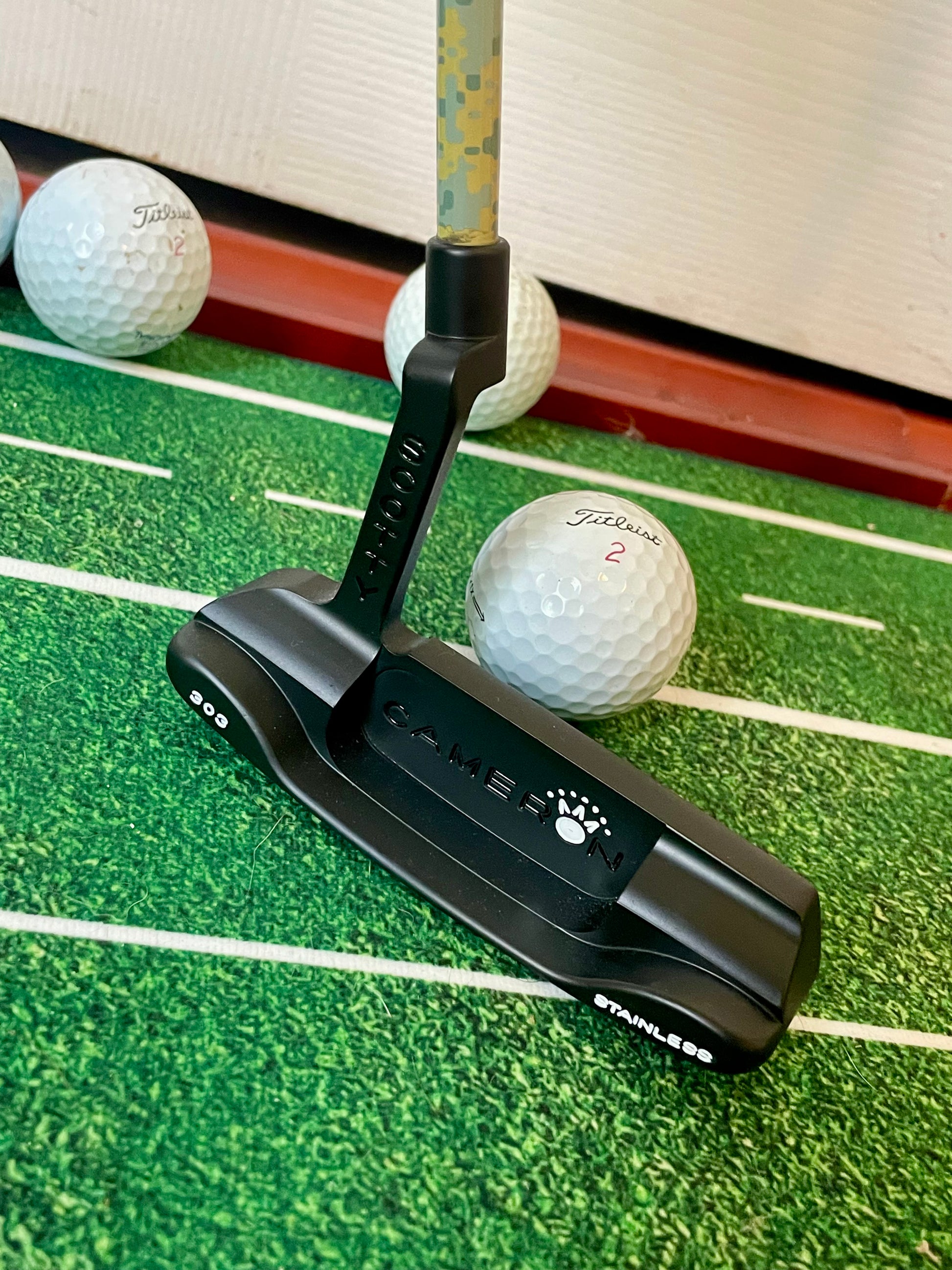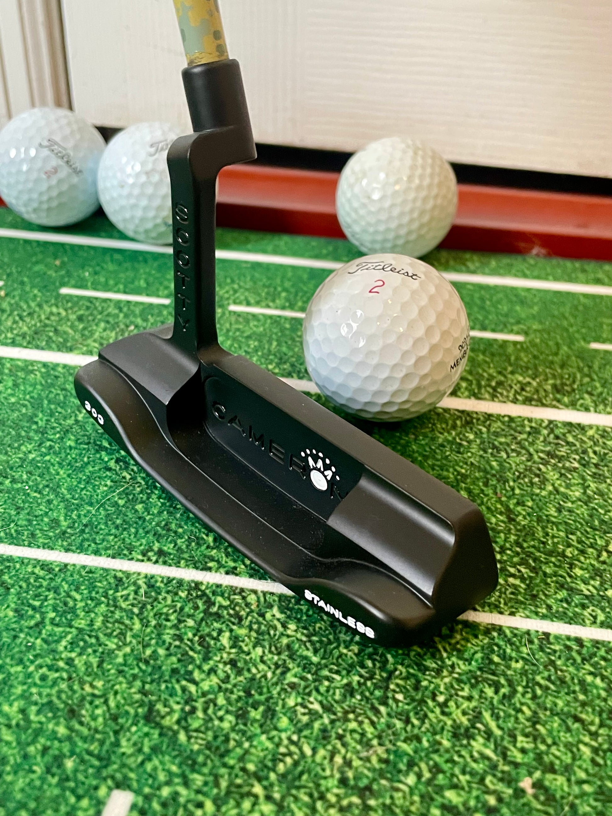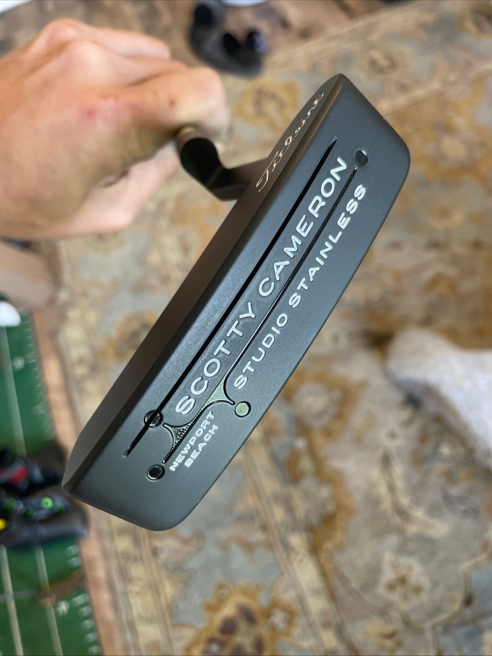 This is a beauty! A dead mint Newport Beach- nothing but blasted, coated black, repainted, and built on a camo KBS GPS 120. New black "Baby T" grip, and a 2-tone grey/silver Scotty Cameron headcover from the custom shop.