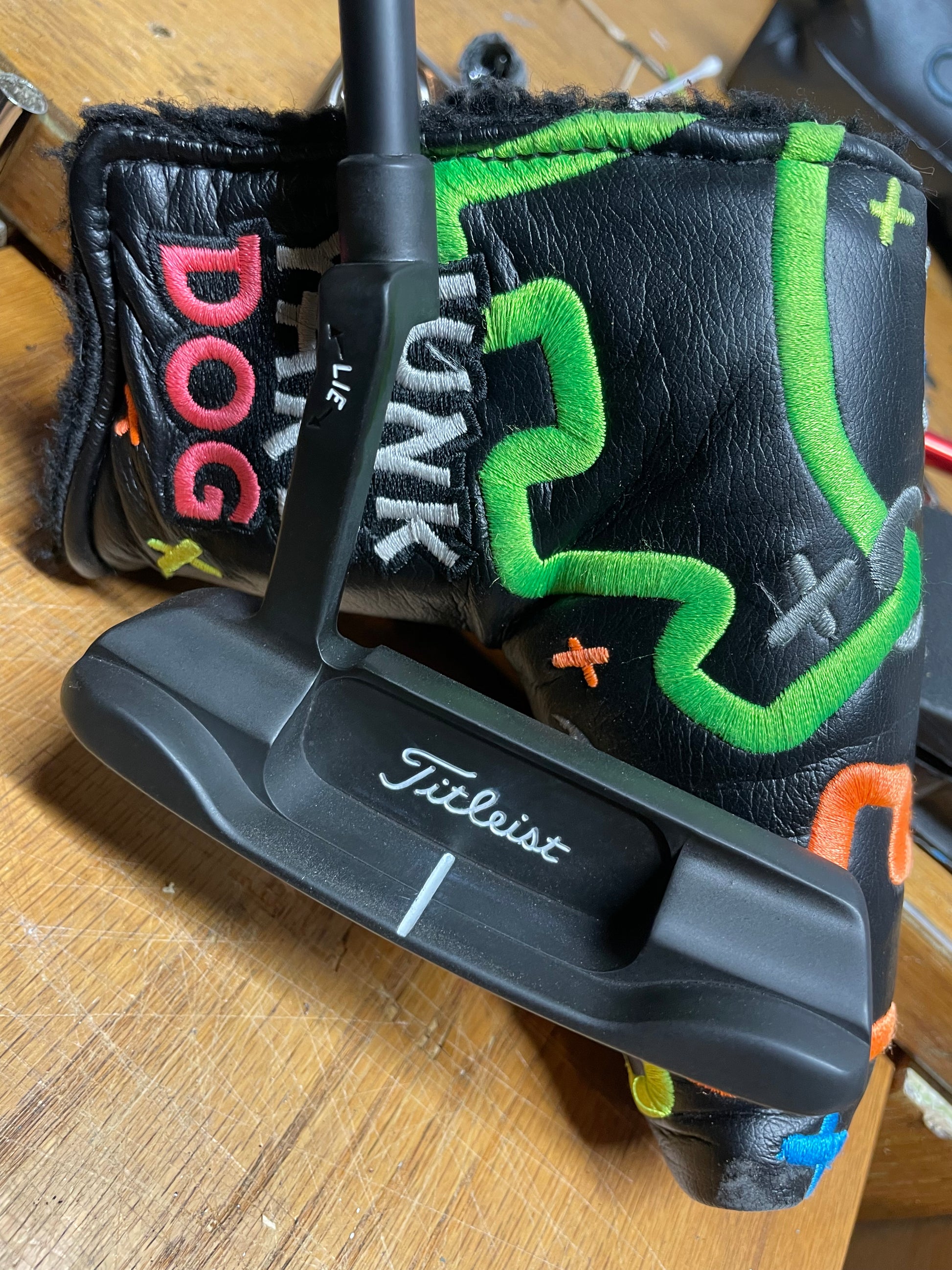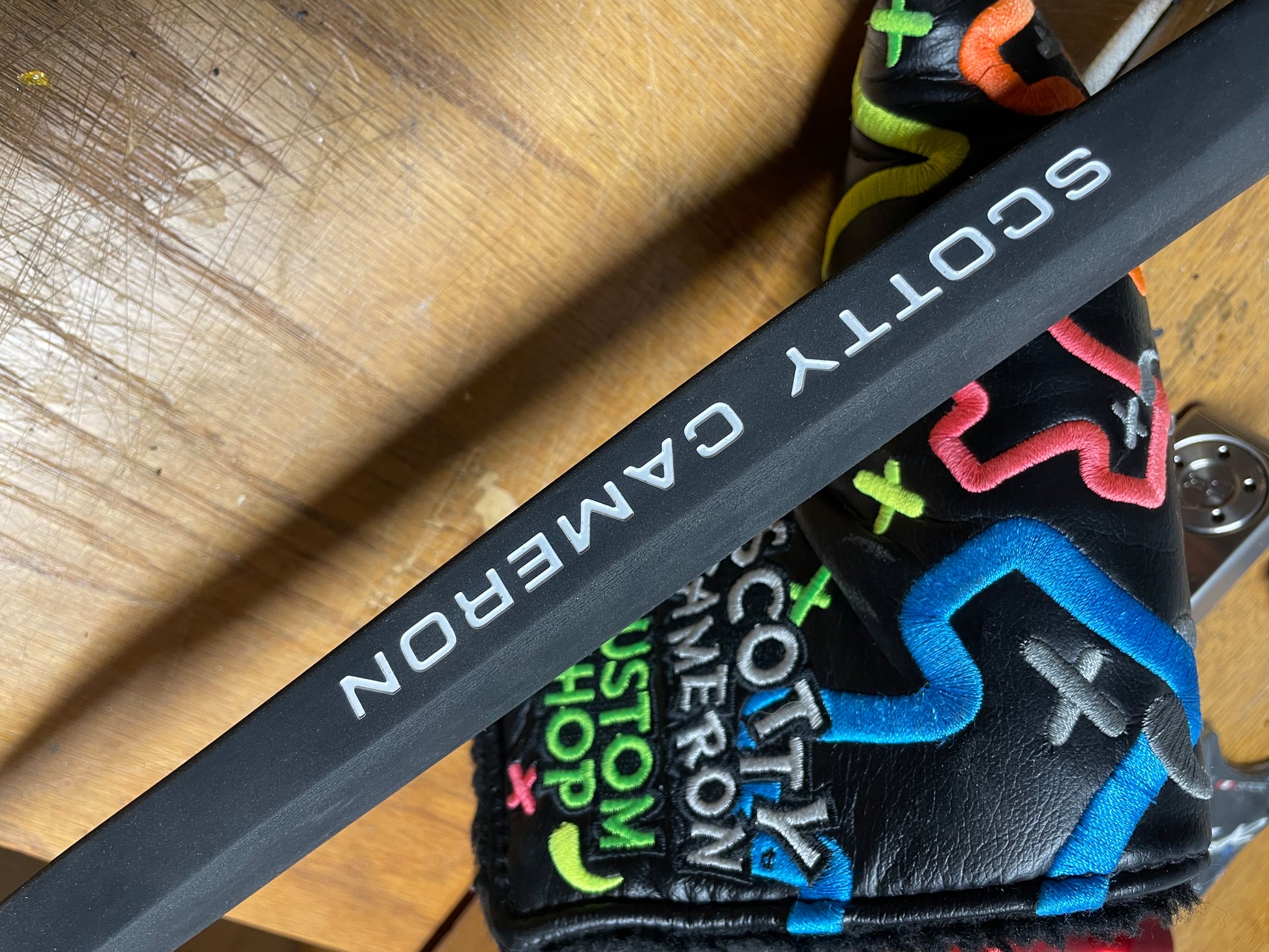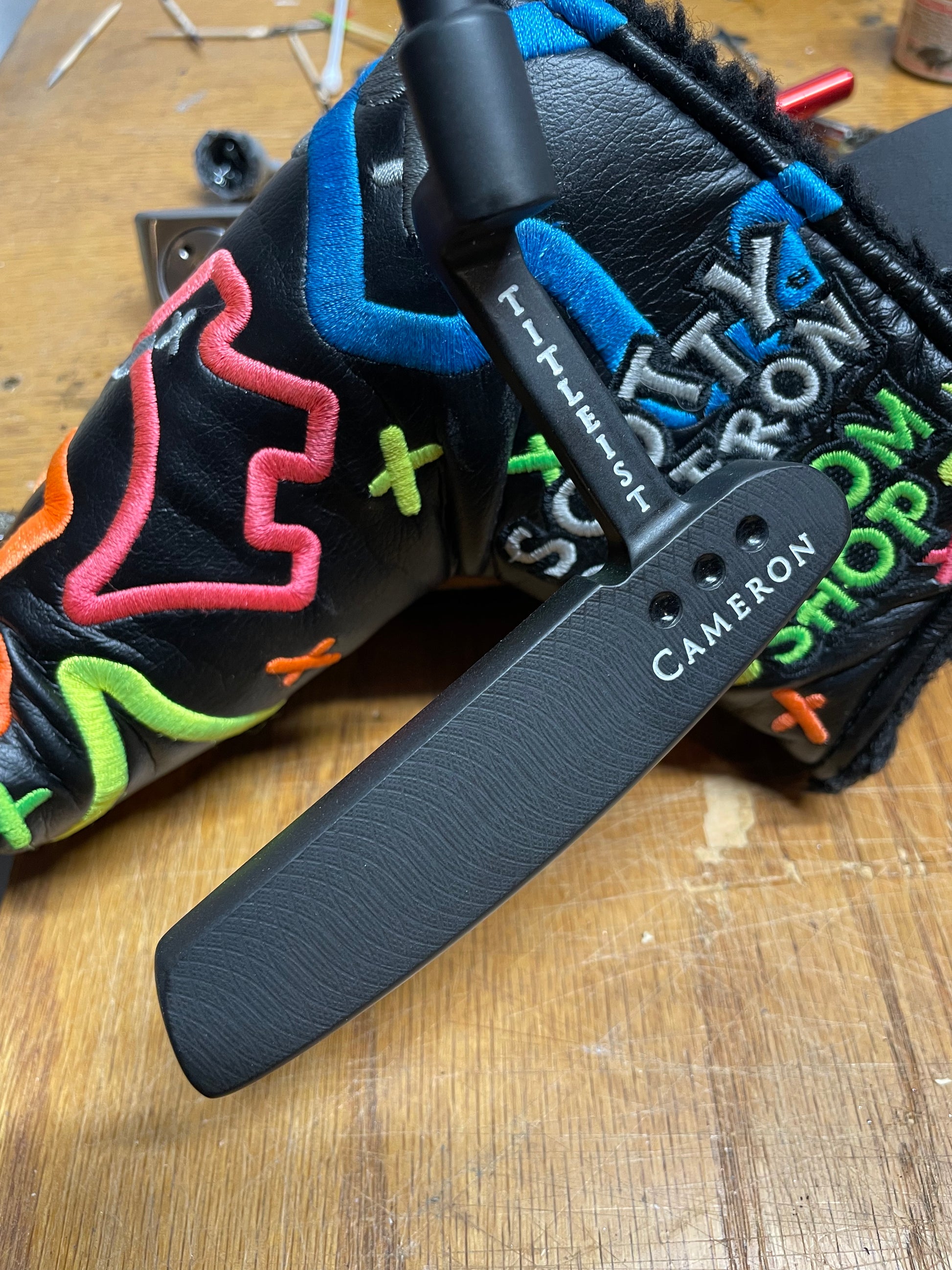 Black and white pistolini plus from Scotty Custom Shop, on a matte black shaft, with a matte black head. White trim.