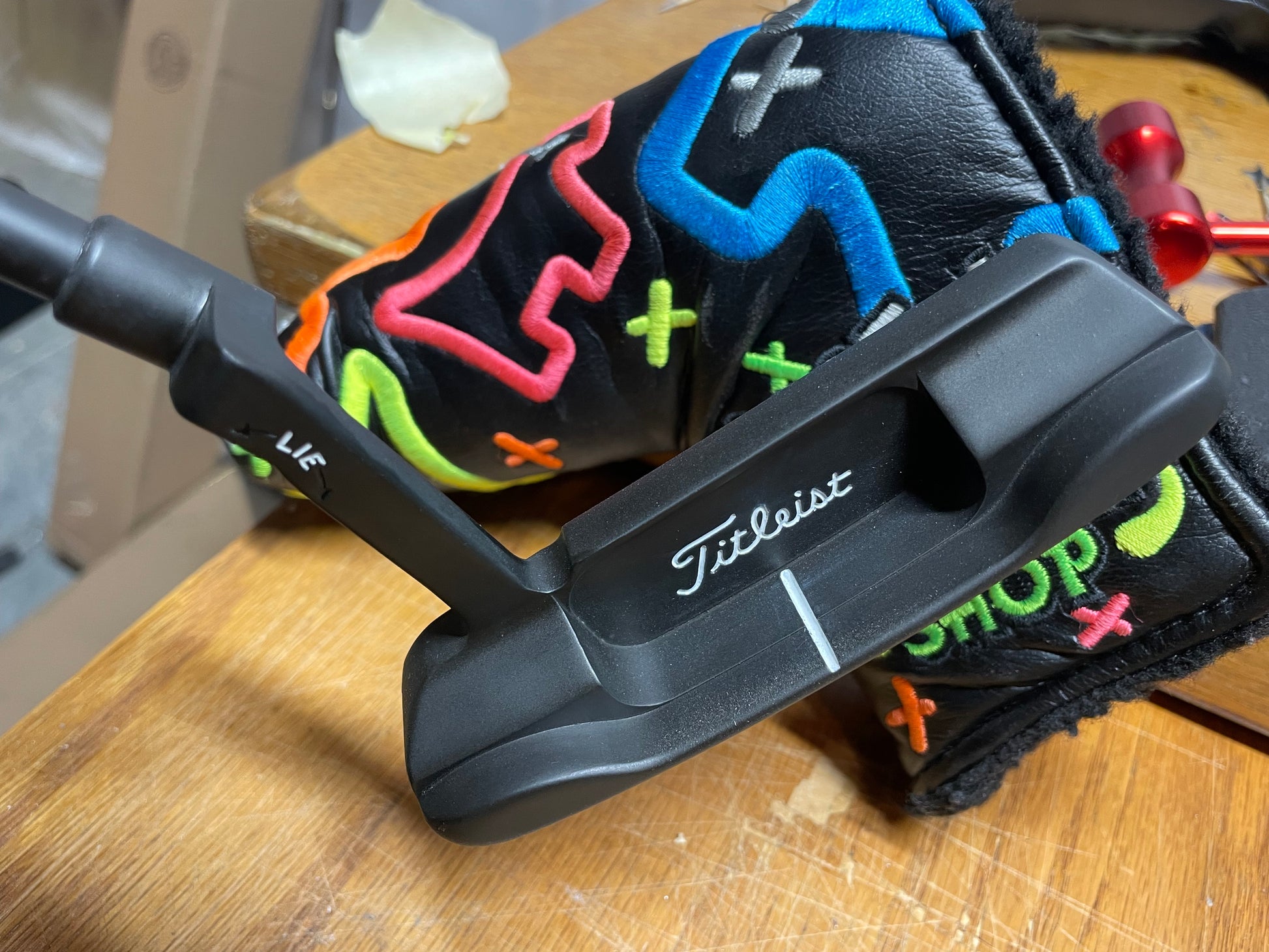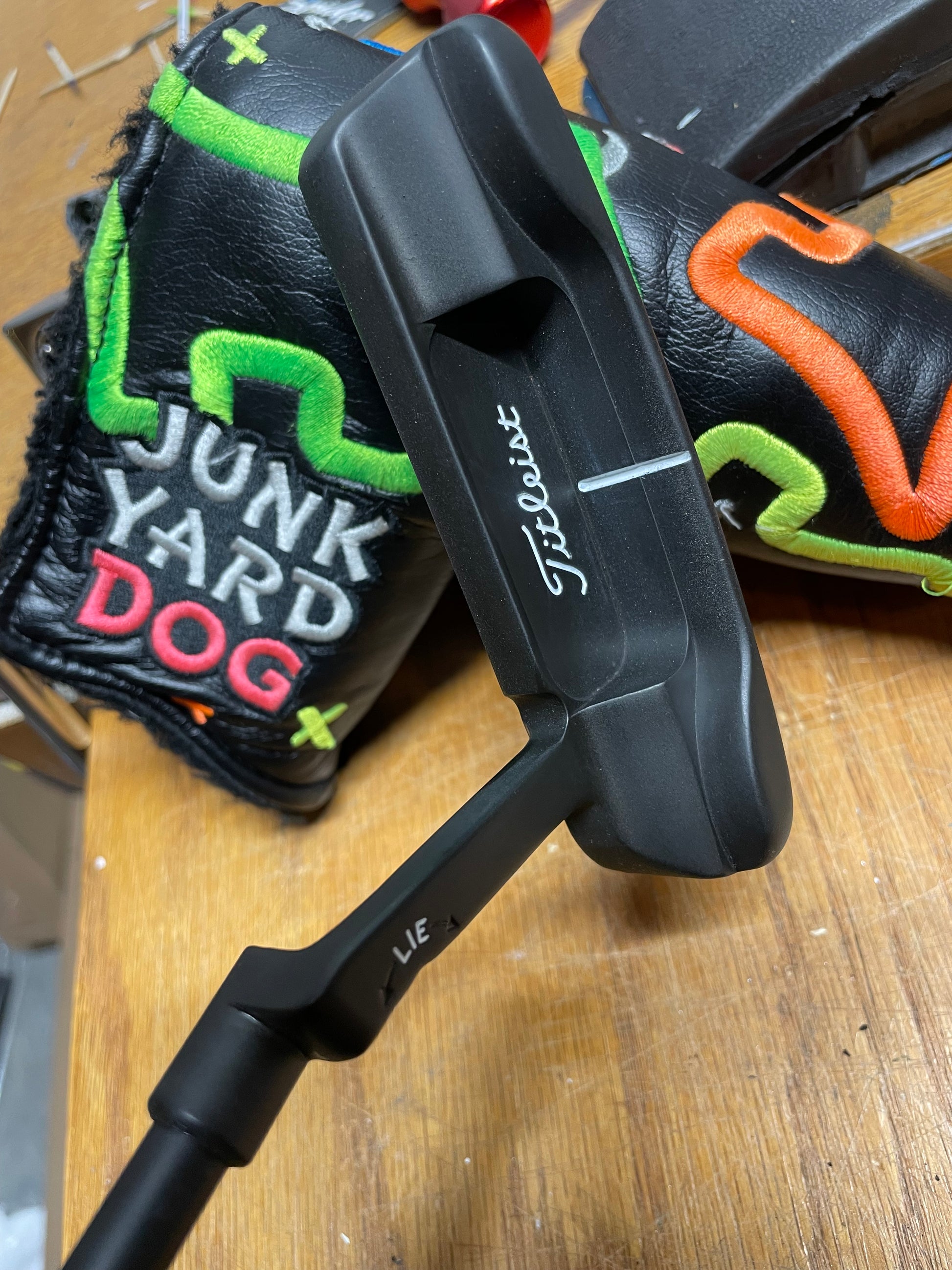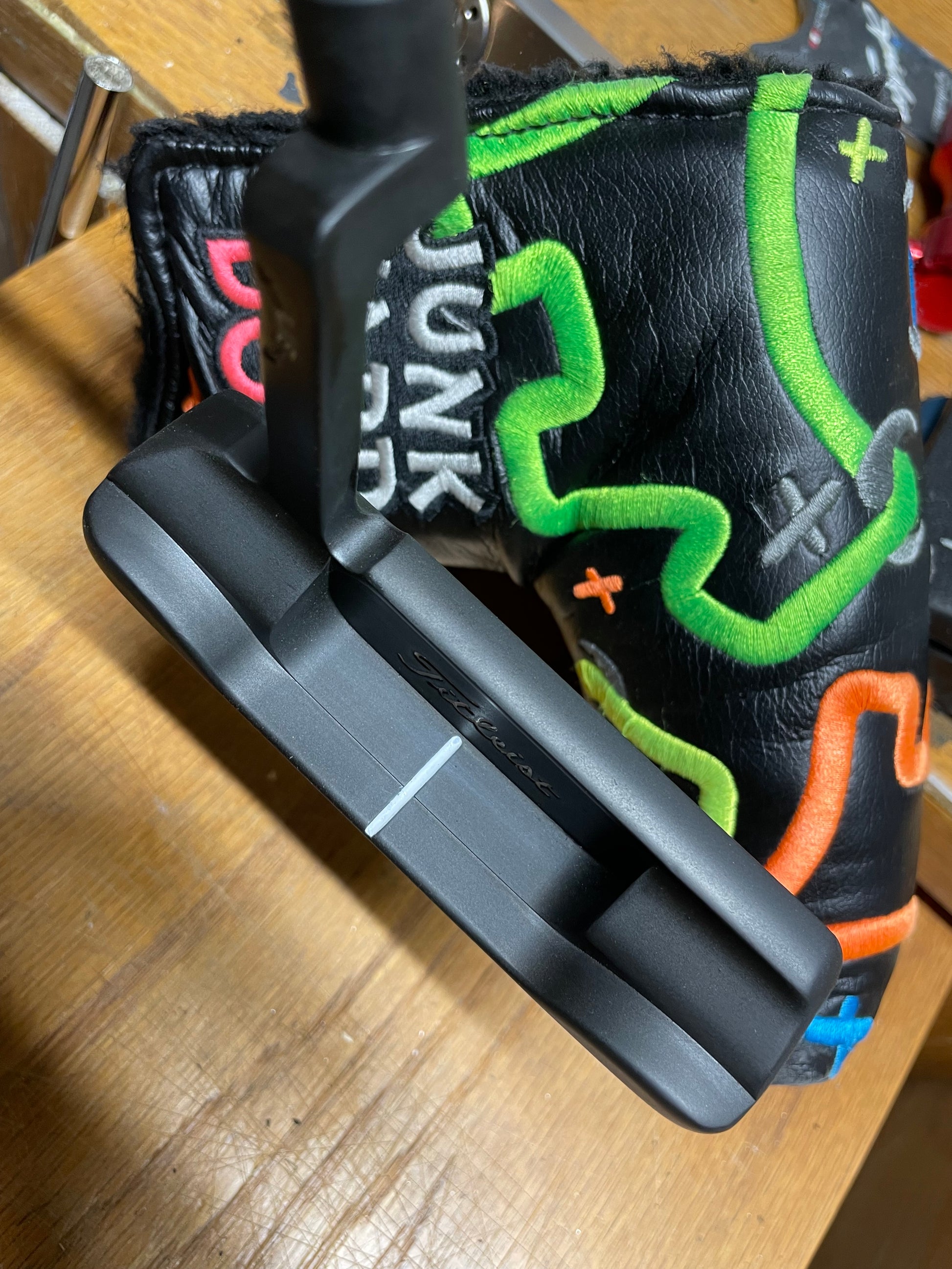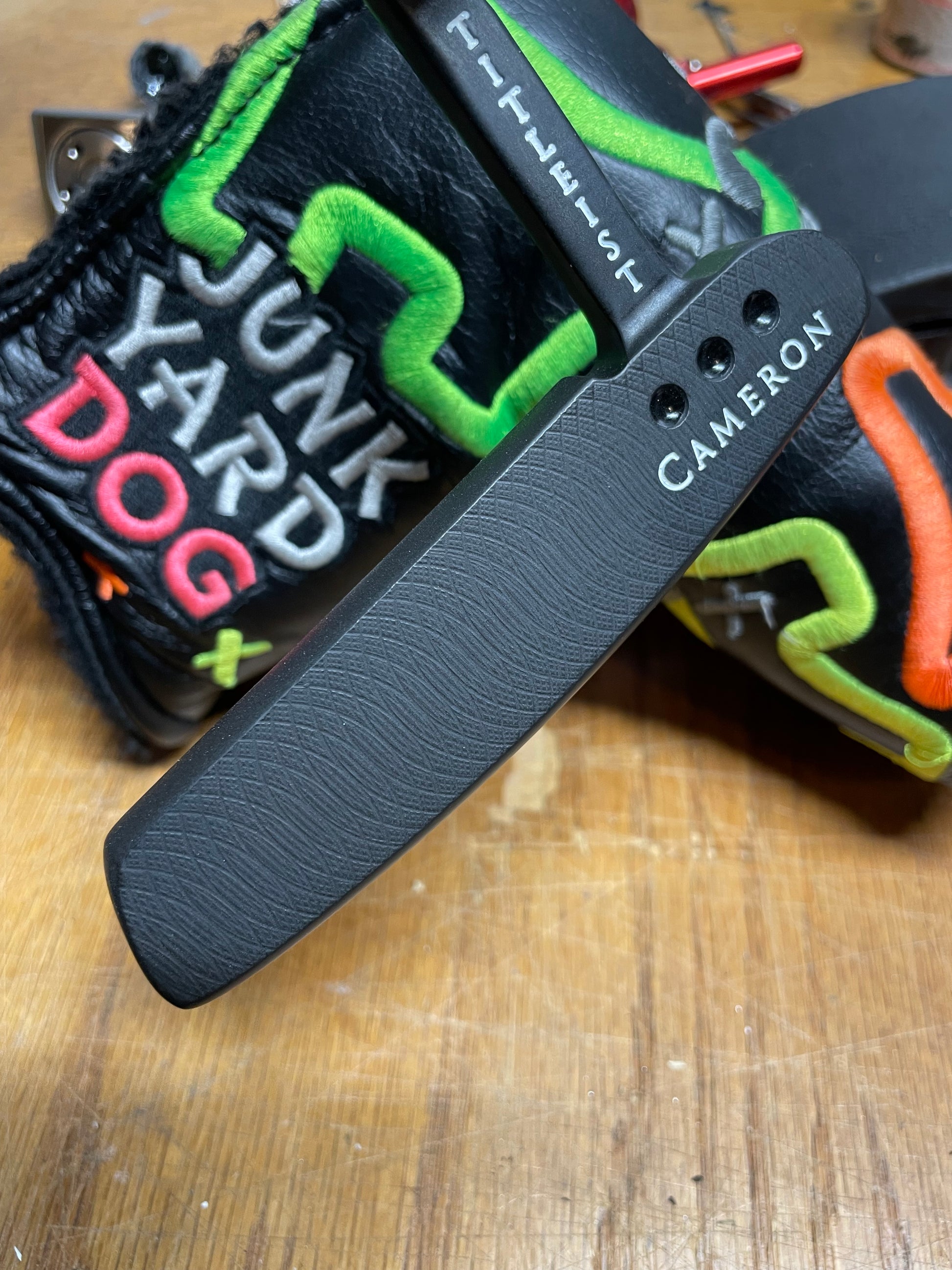 Black and white pistolini plus from Scotty Custom Shop, on a matte black shaft, with a matte black head. White trim.