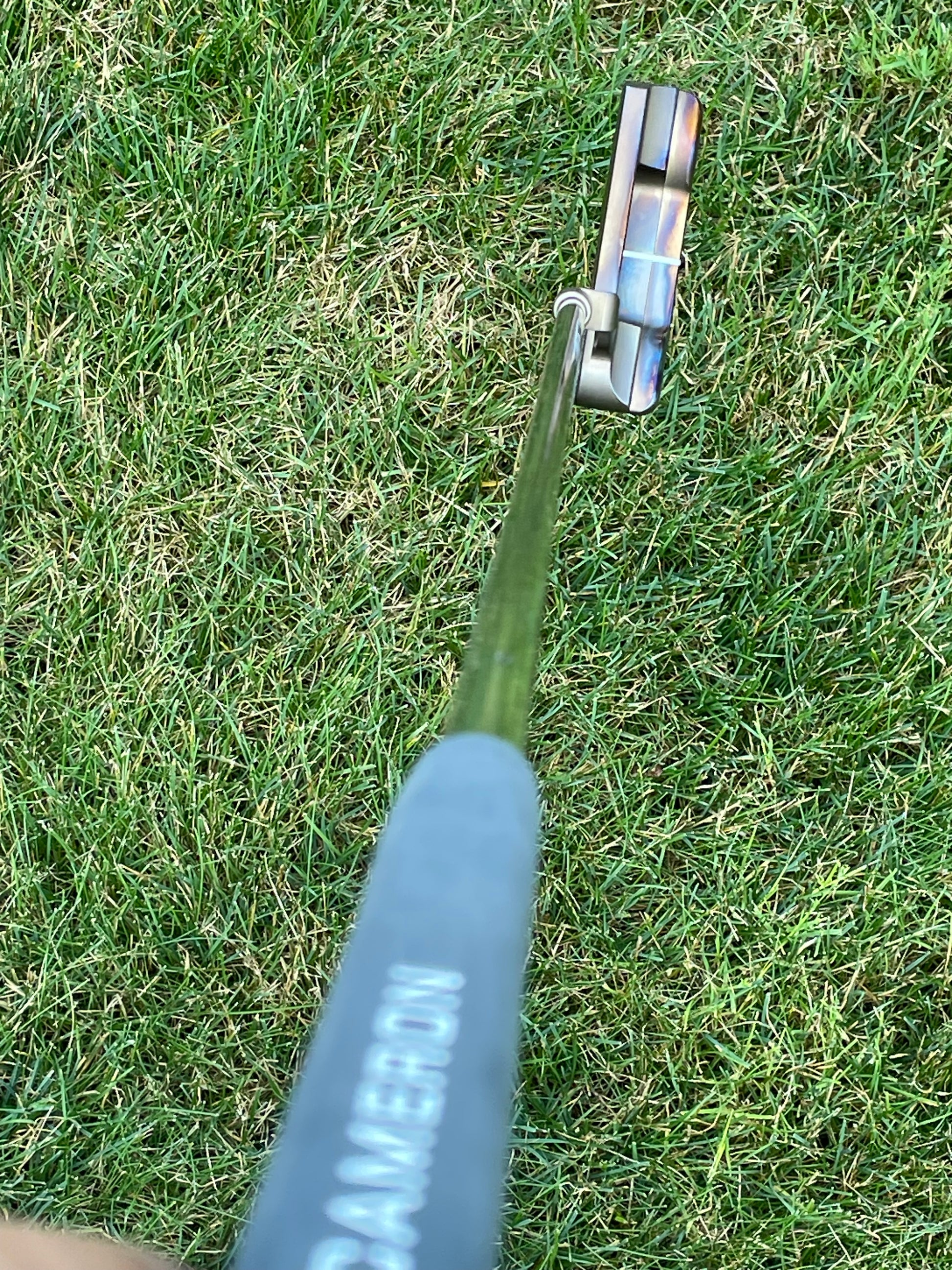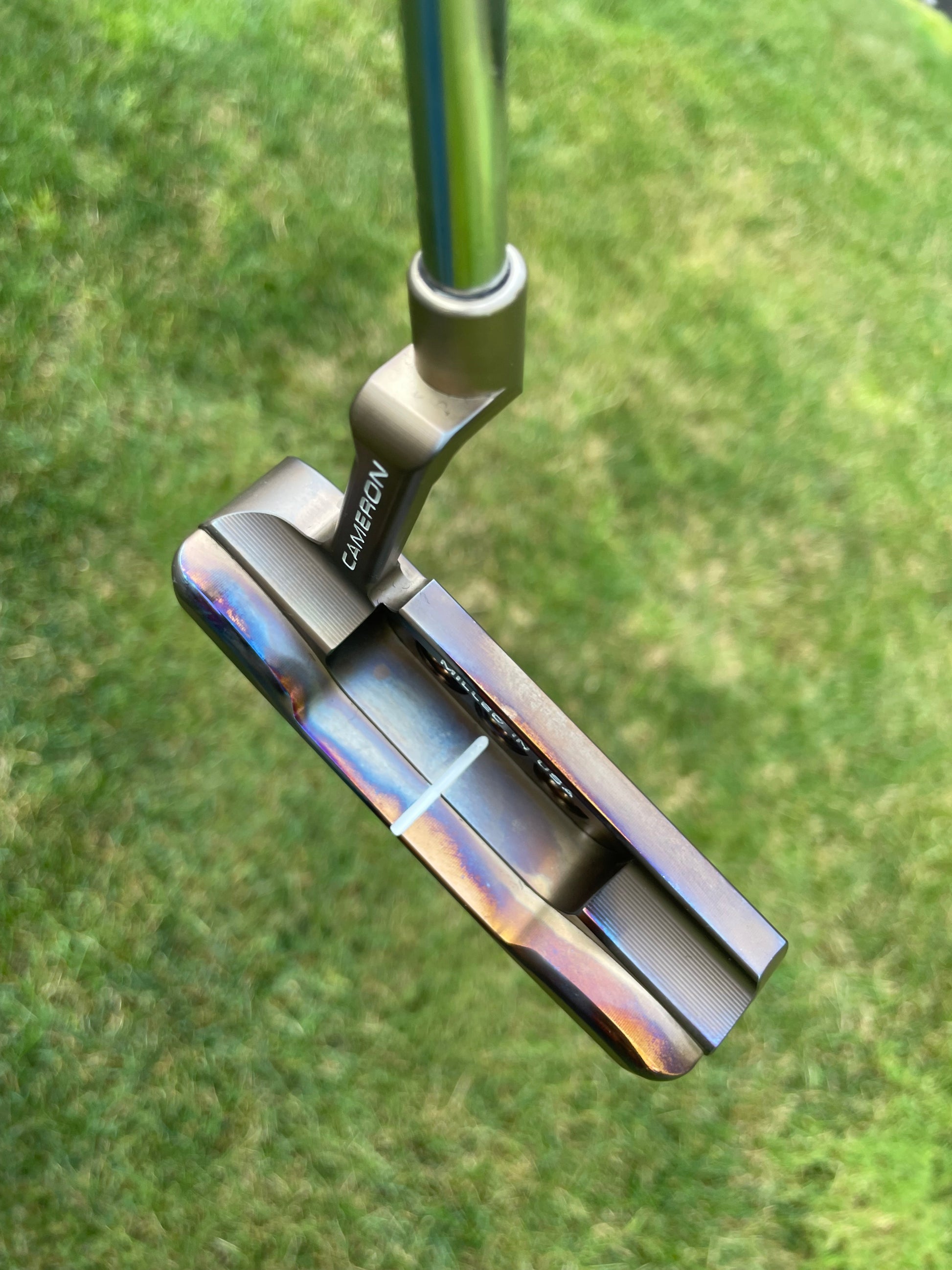 This is a new putter. Included are all the stock accoutrements. Shaft/grip/cover. This putter was carefully hand torched, with some tricks of mine to obtain the best color in the game! This putter looks incredible in the sun. Plays 34" - I have weights and shafts to change this easily.. happy to adjust!