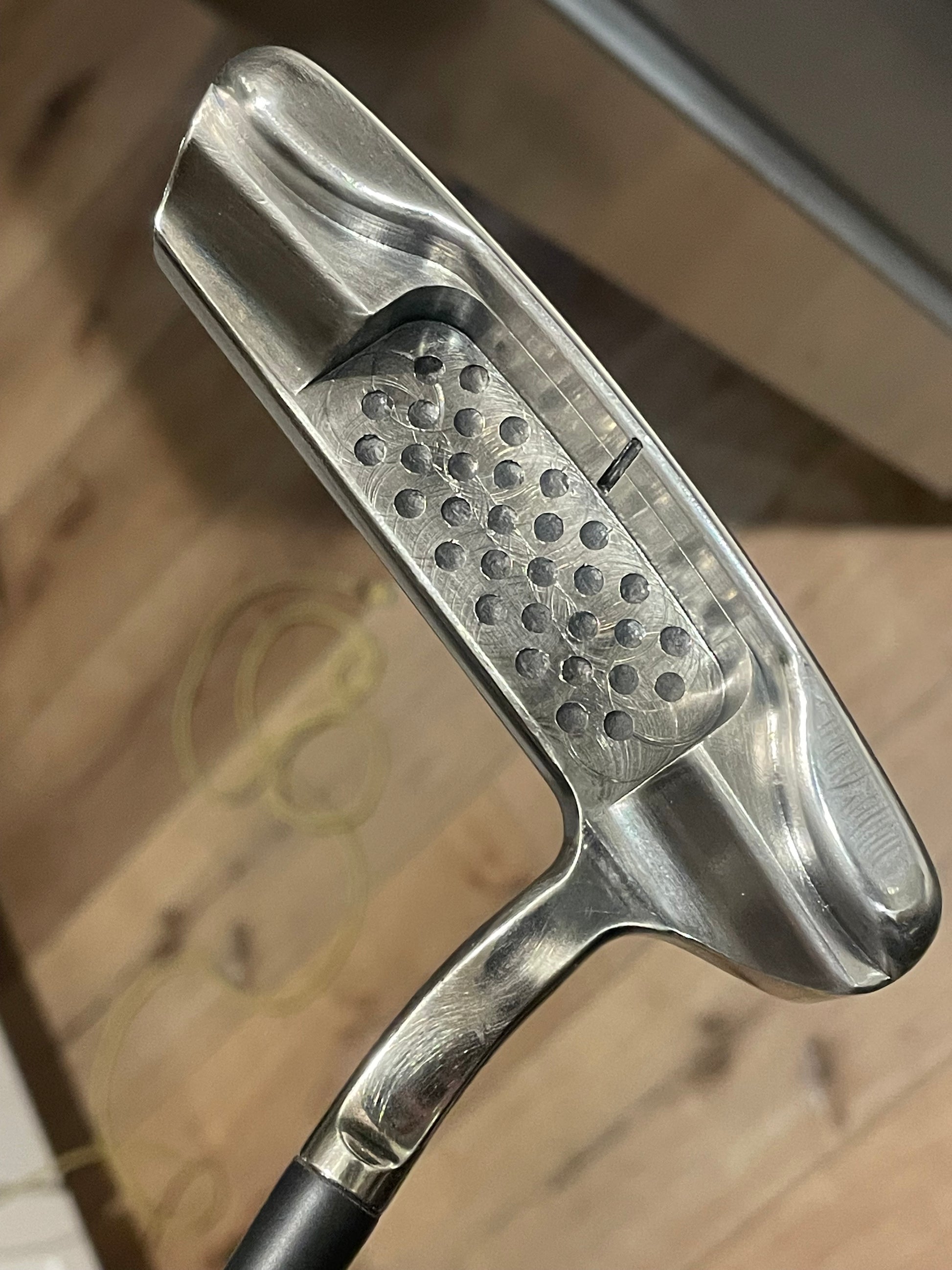Face insert was touched up, rebuilt with black caulking in the cavity, and gloss black paint / black shaft. I put a purple gripmaster paddle on it, you can have any color you would like!