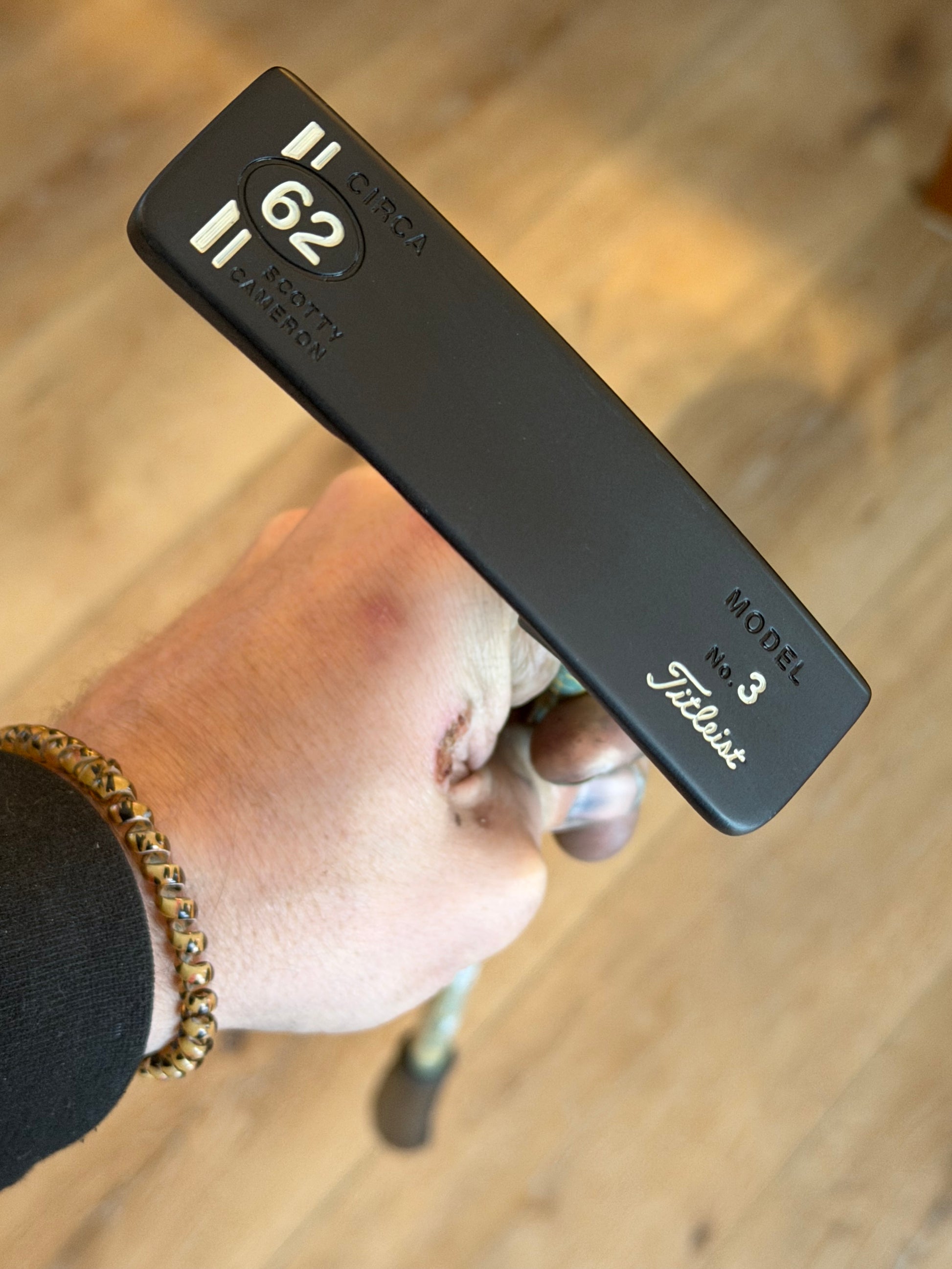 This putter is a bit of a military tribute… digital camo KBS tour GPS 120 (this is a limited run graphite). Kangaroo midsize from the Gripmaster. The best.