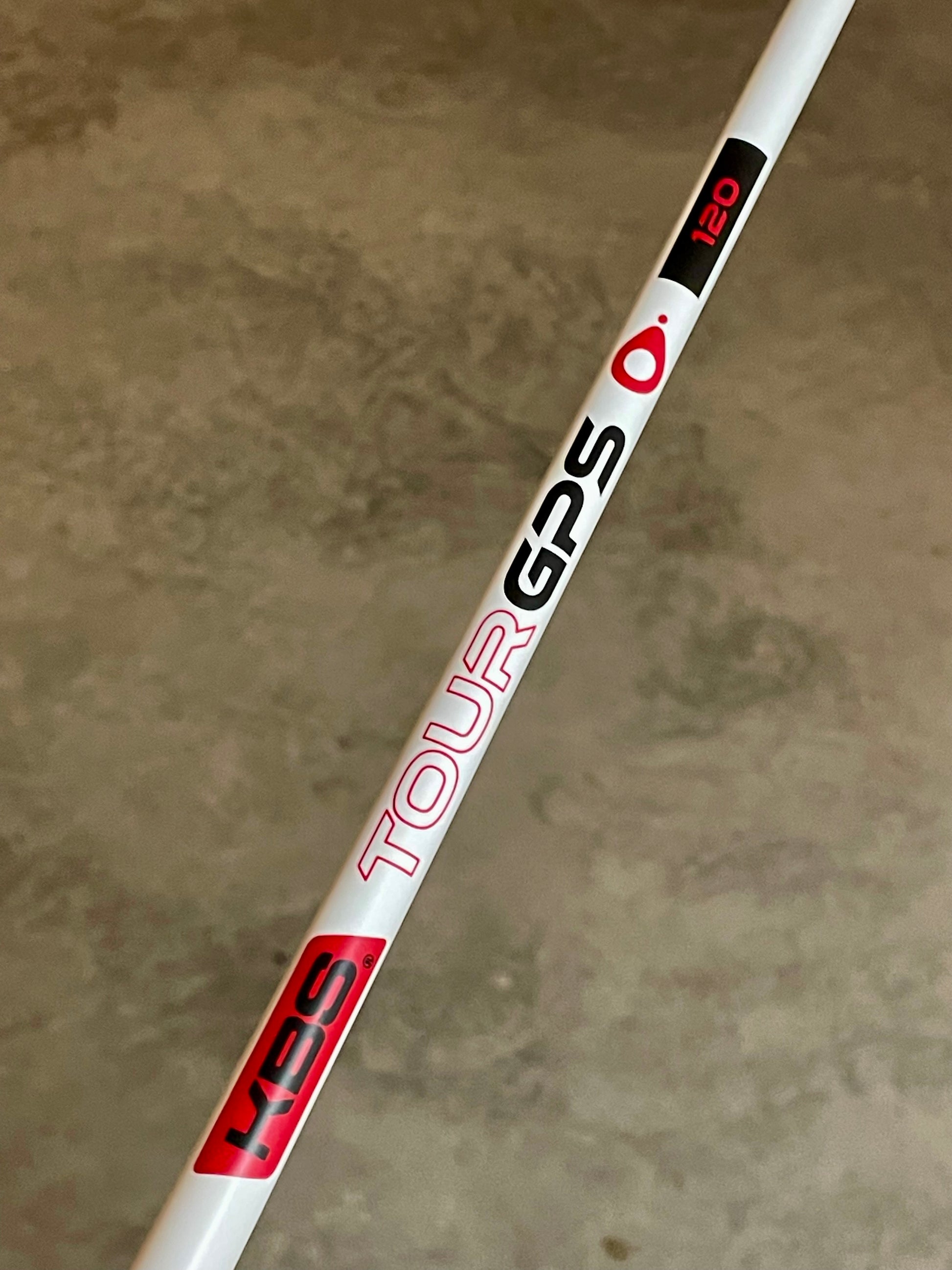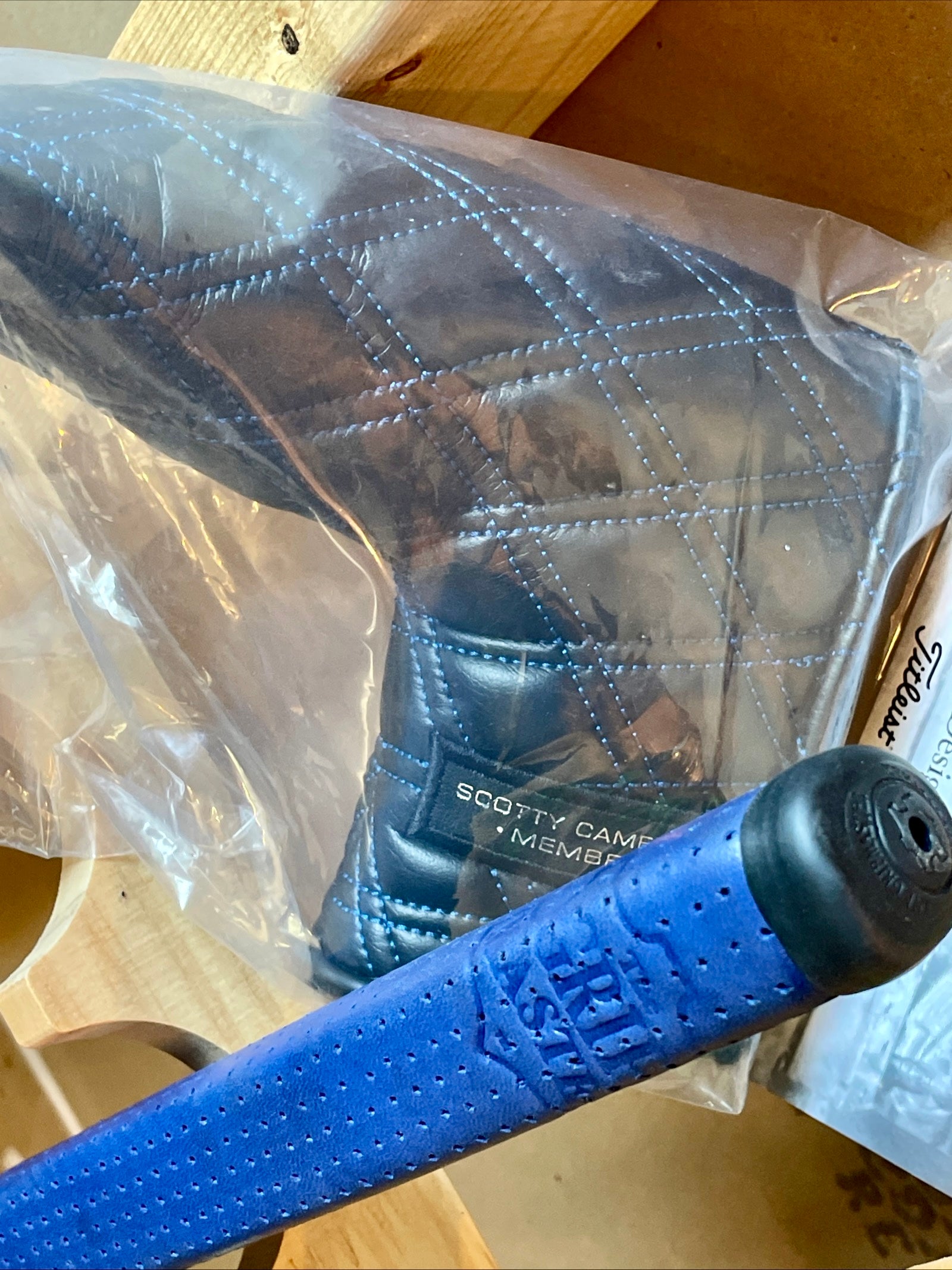 New Tour GPS 120 shaft in matte white, from KBS. Blue cabretta paddle grip from the Gripmaster matches clear blue paintfill. Listing with a 2024 Cameron Club headcover, which matches perfectly!