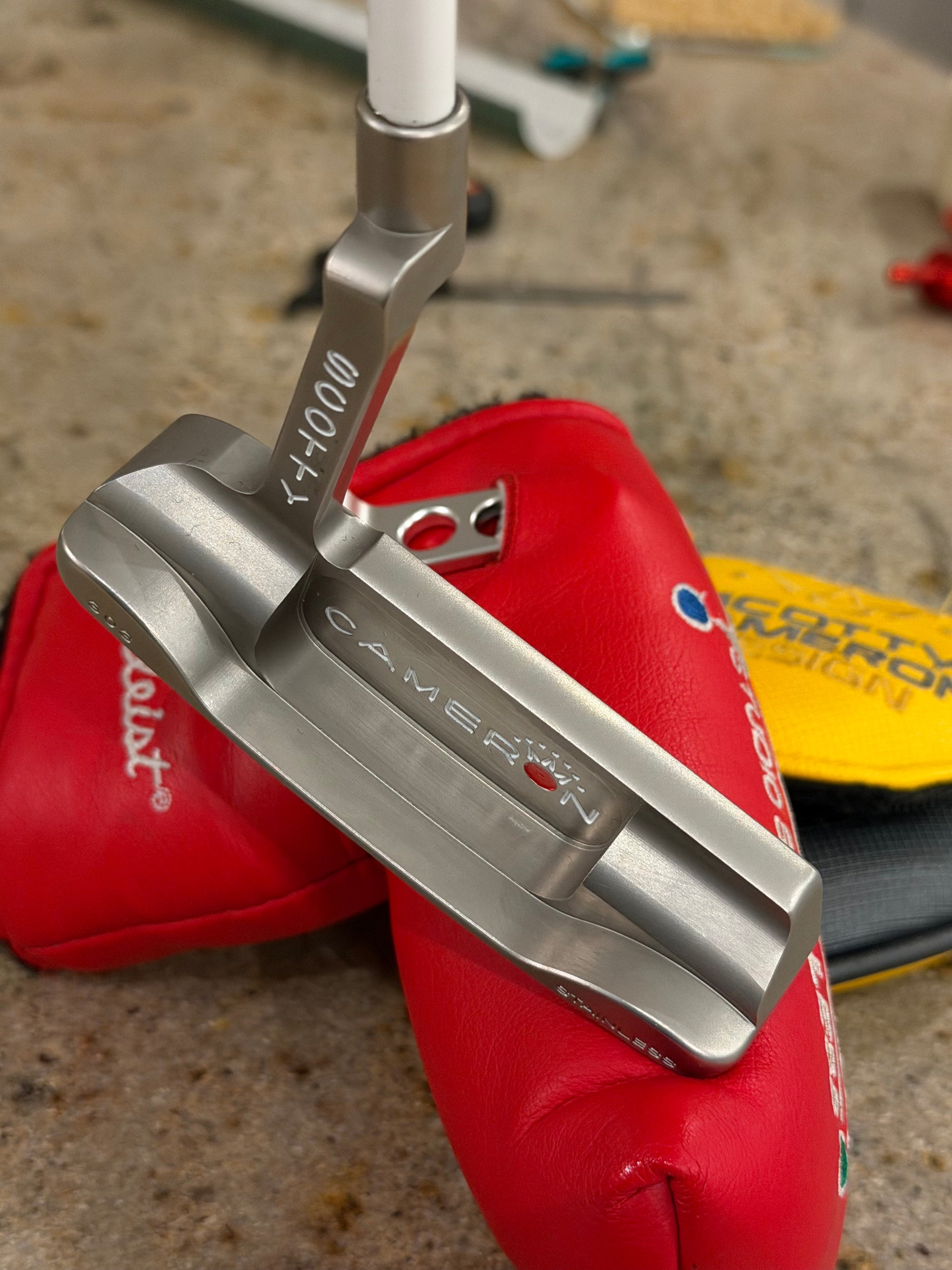 Love a clean Newport Beach. This one is better than that. Just about perfect. Touched up with a satin blast and new paint. New gloss white graphite KBS. Three-way stitched leather grip (red/white/blue), and a perfect original cover. Also, a 2025 pivot tool, brand new. This is something you don’t see every day. Finished in tour satin. Face is original, zero weight alteration. Plays 35”