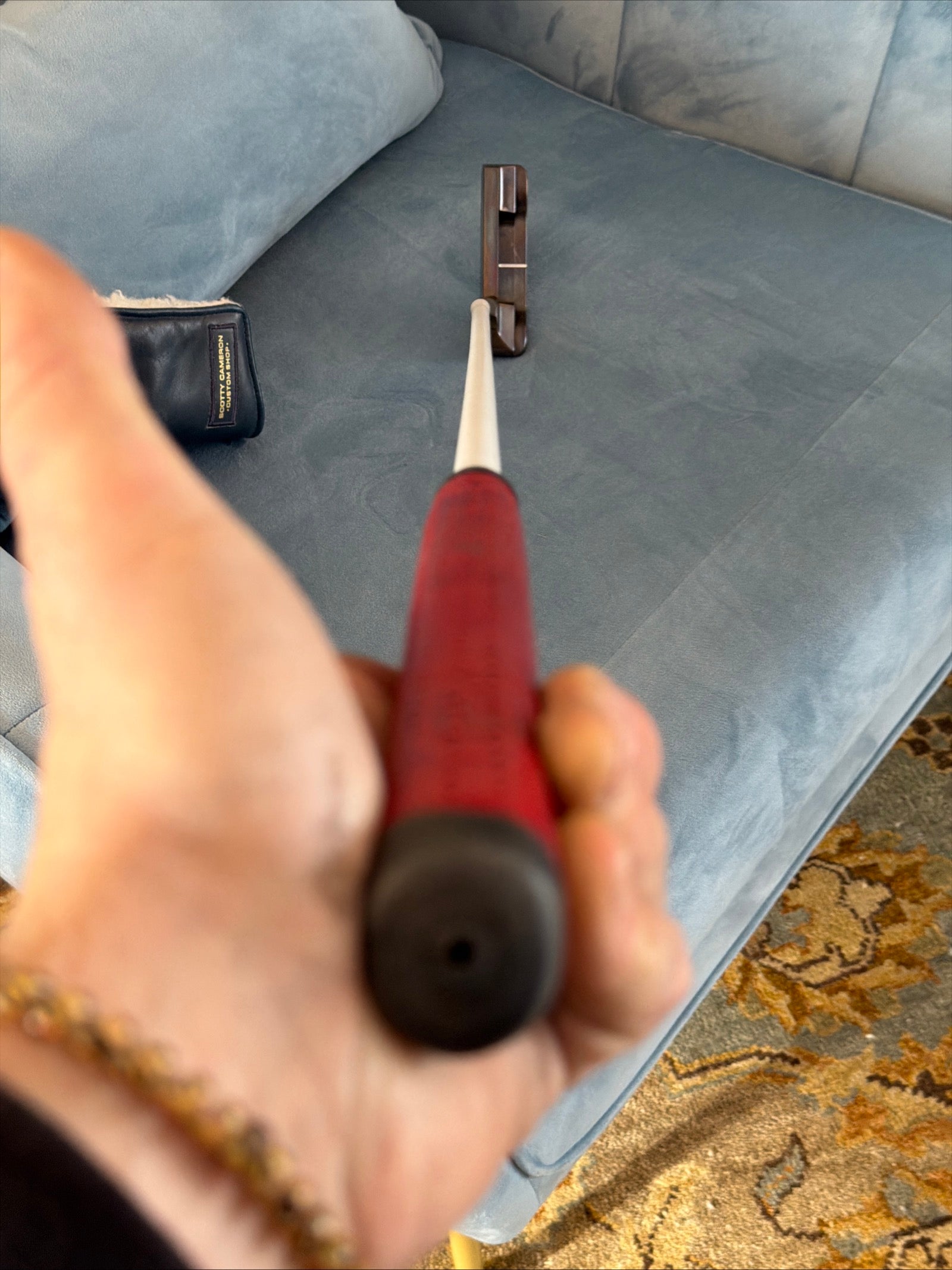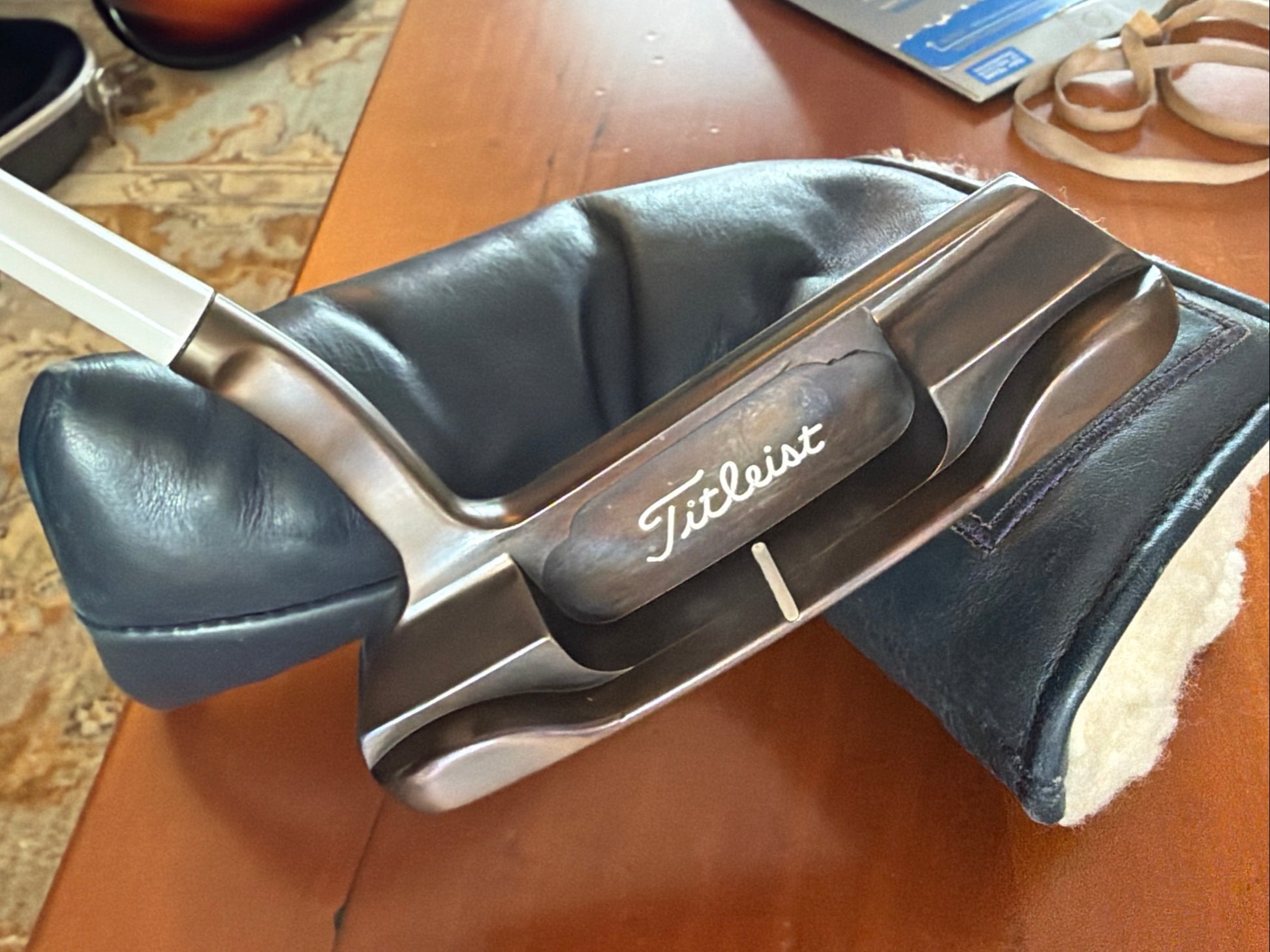 New white stepless steel shaft. Pinflag (steerhide) custom shop cover is used but in good shape. Plenty of life. These covers are bulletproof. New gripmaster cabretta midsize in red. This will be a sweet roller for somebody! Straight in the bag!