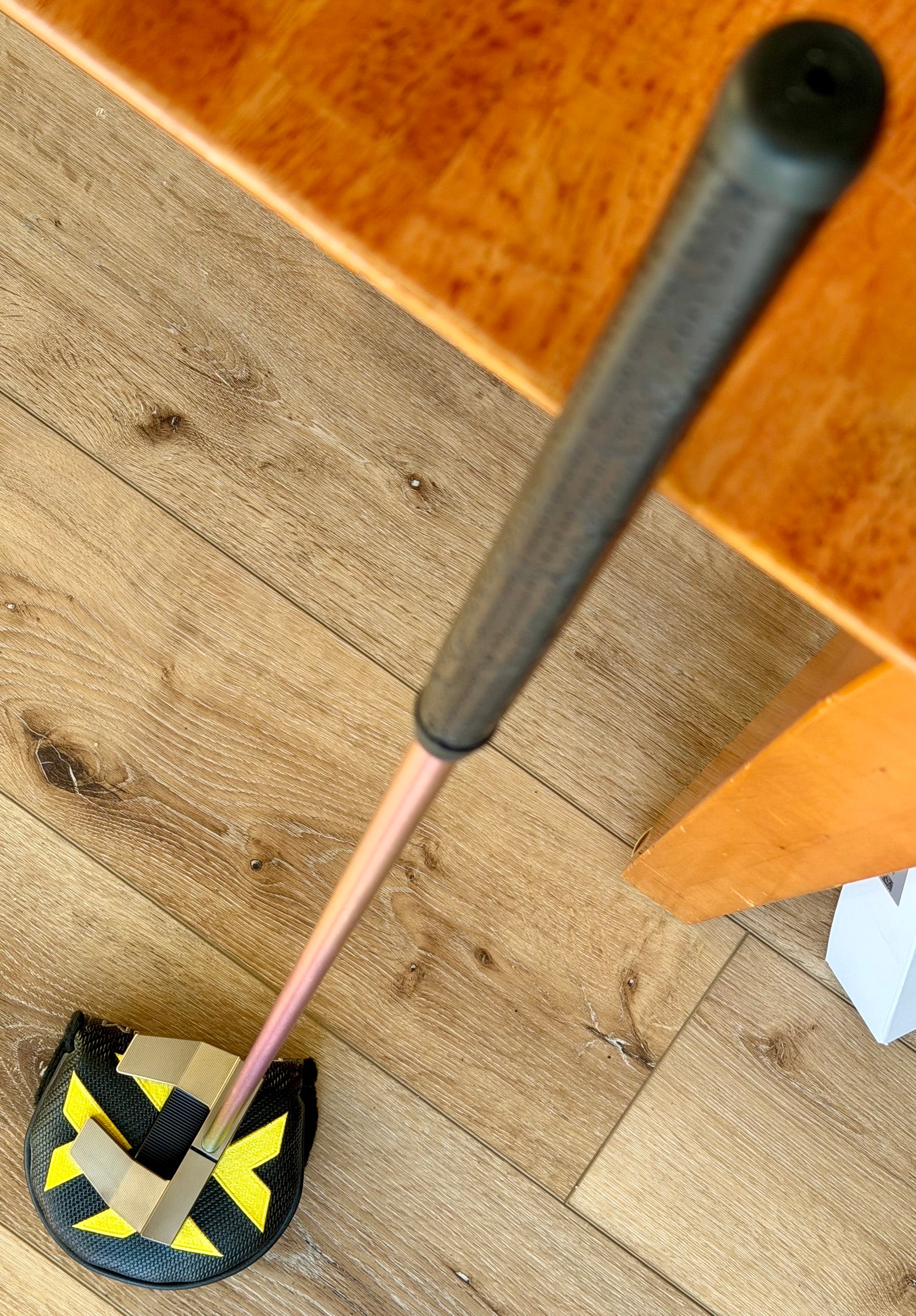 Brushed rainbow CT Tour (not available at retail), beautiful torched head. Candy purple paint. Black kangaroo midsize from the Gripmaster. The best! This thing is ready, are you?