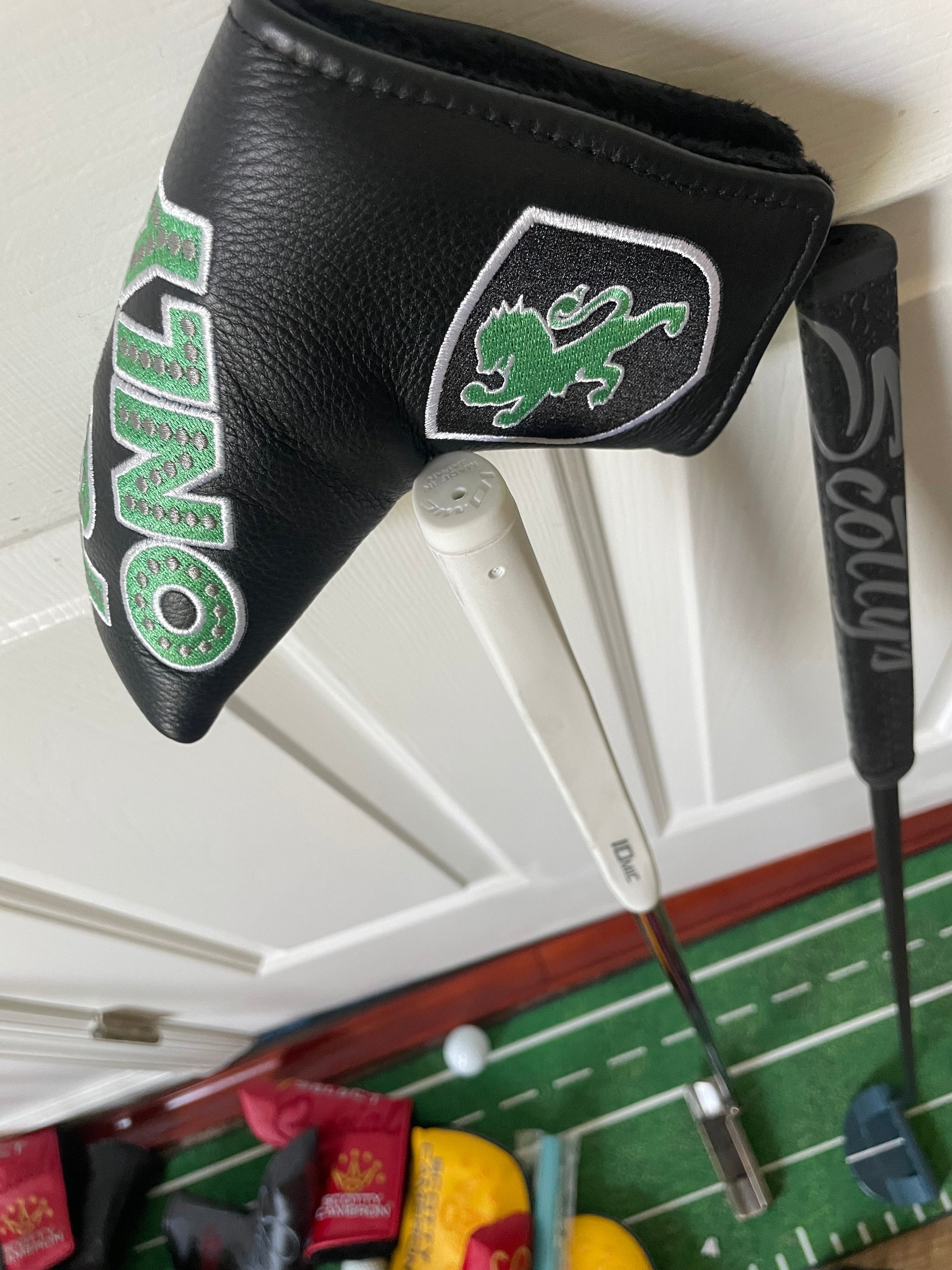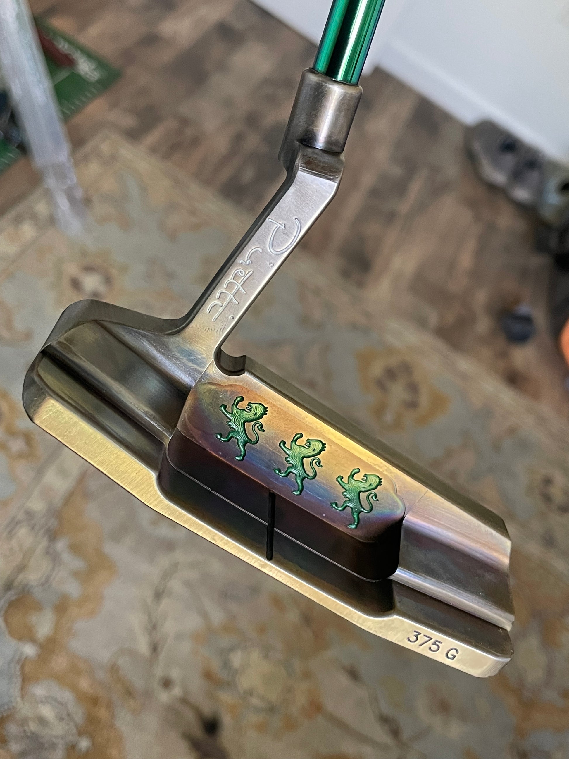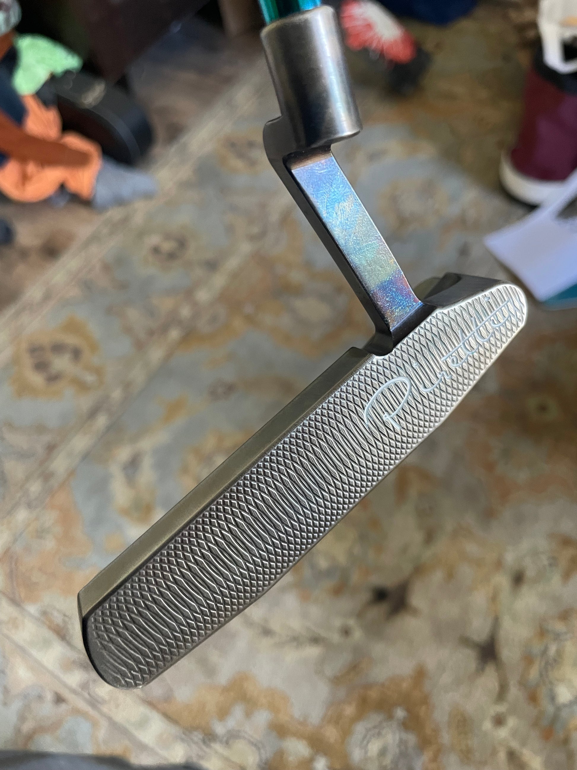 This is a cool finish! Torched on top of a partially removed PVD job... for a really cool rainbow / oil can look. This is a heavy head with deep milling, it feels amazing. New KBS CT tour shaft in rainbow PVD. New TOUR ONLY headcover, and a white iomic midsize. This is a weapon! Priced to move!