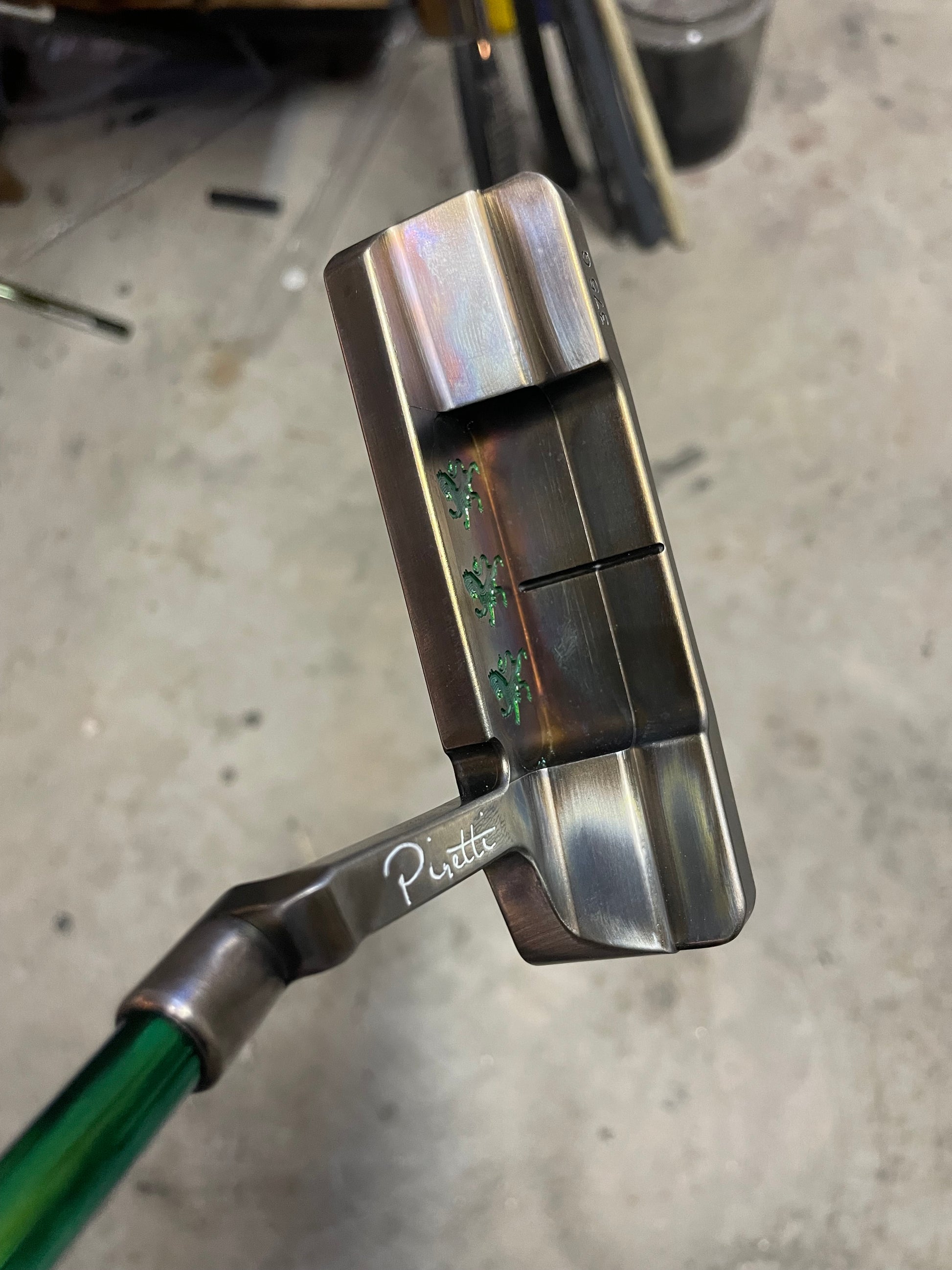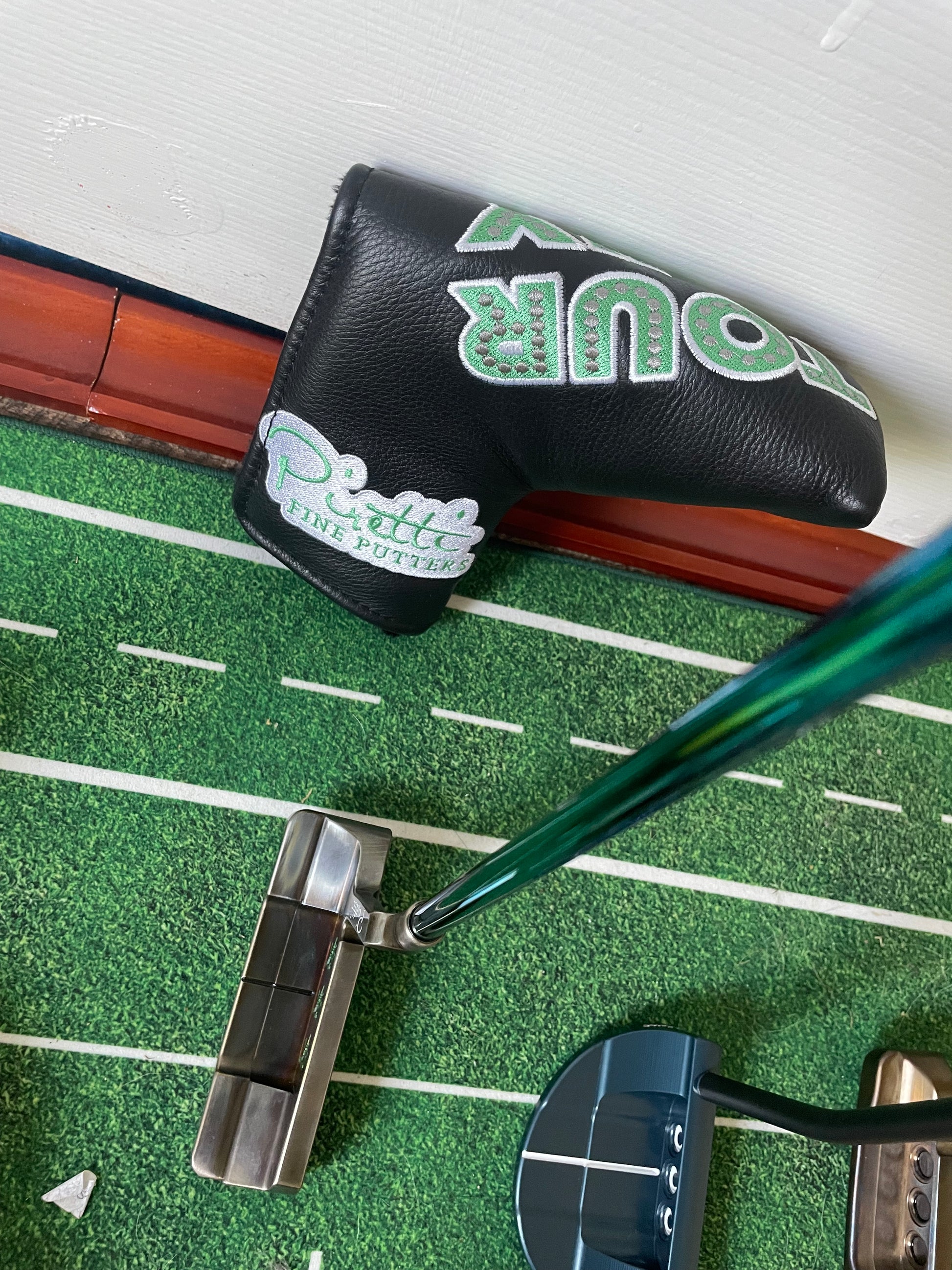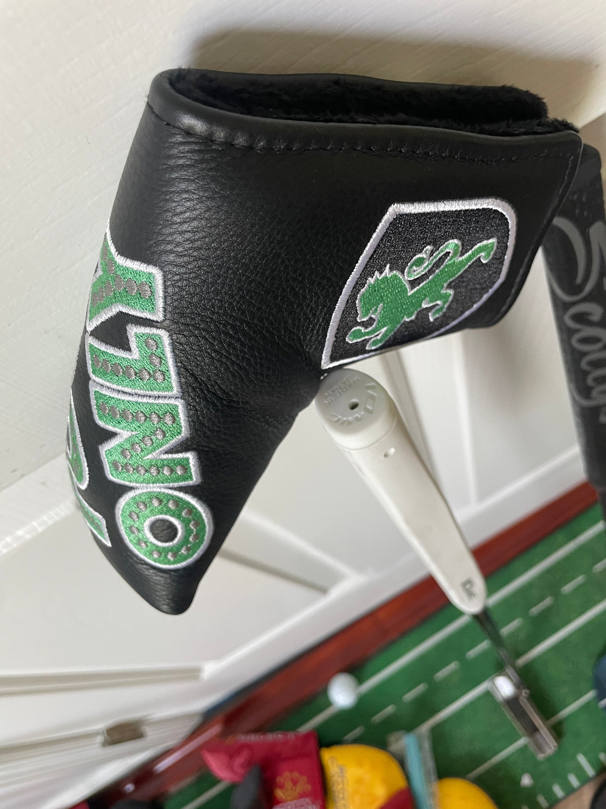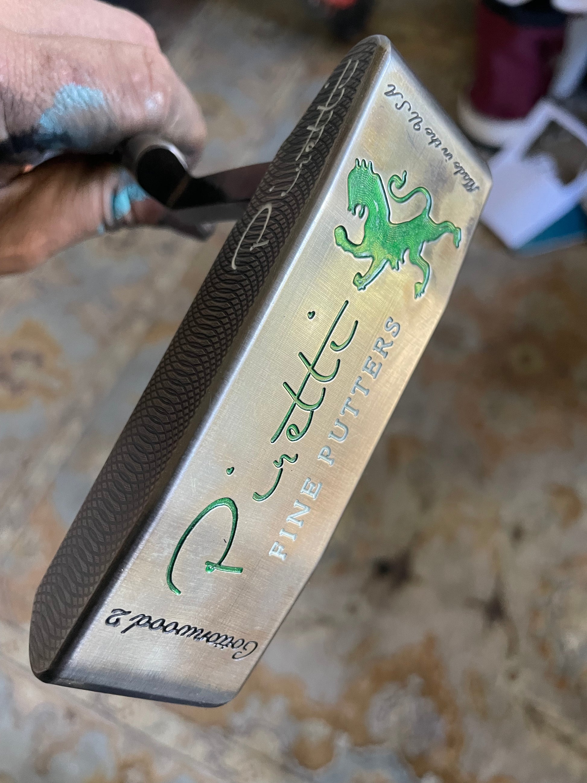 This is a cool finish! Torched on top of a partially removed PVD job... for a really cool rainbow / oil can look. This is a heavy head with deep milling, it feels amazing. New KBS CT tour shaft in rainbow PVD. New TOUR ONLY headcover, and a white iomic midsize. This is a weapon! Priced to move!