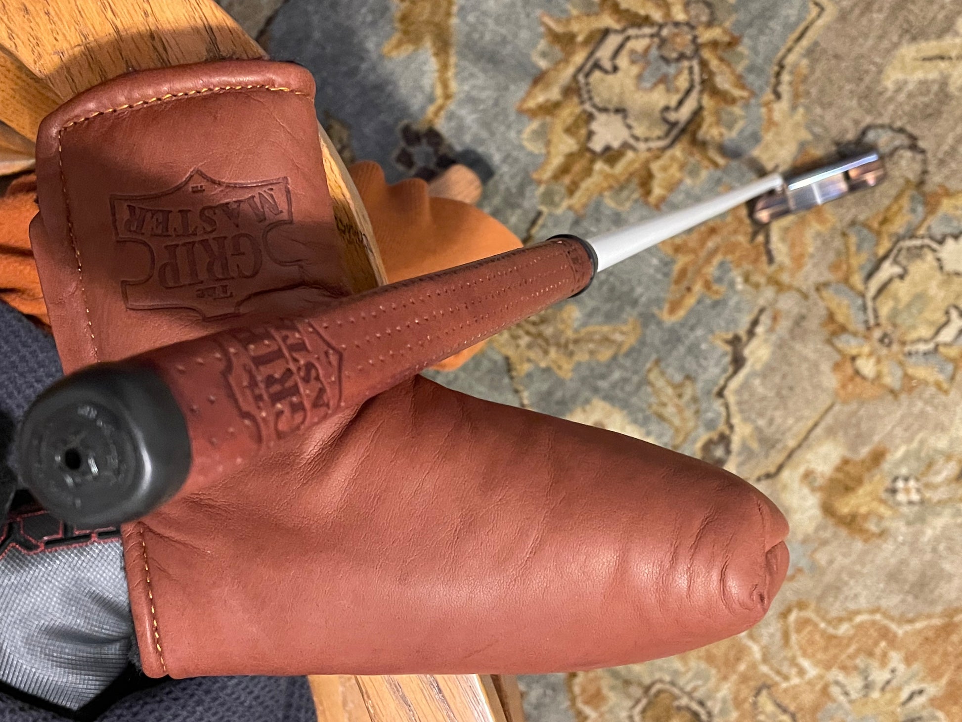 Gripmaster cabretta leather headcover and grip combo- this is a sweet setup! New gloss white shaft. Putter plays 34.5"