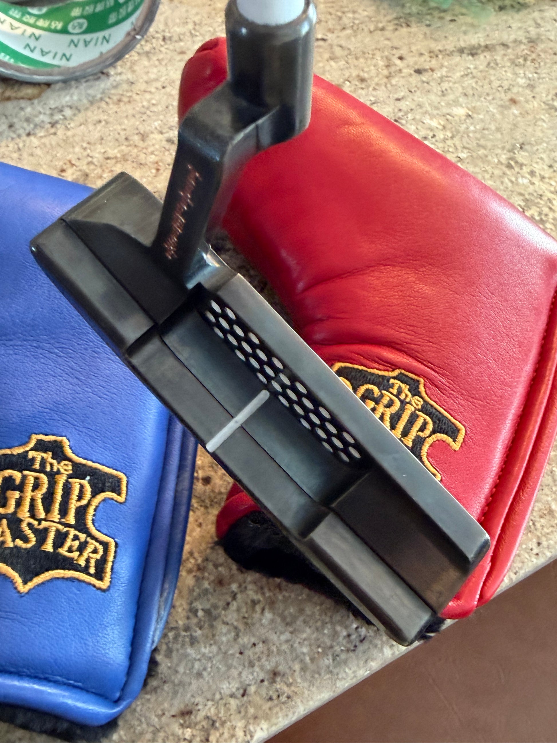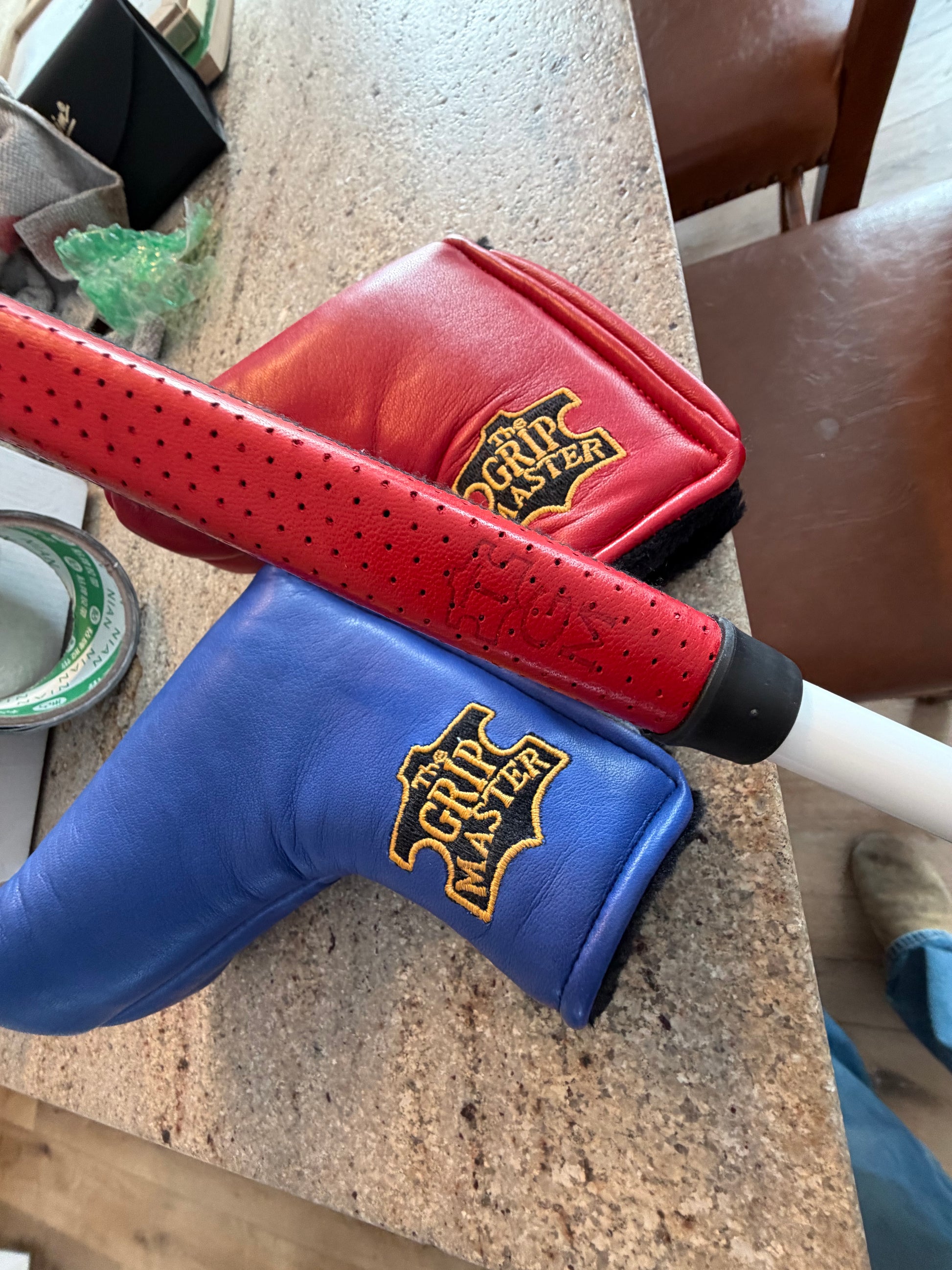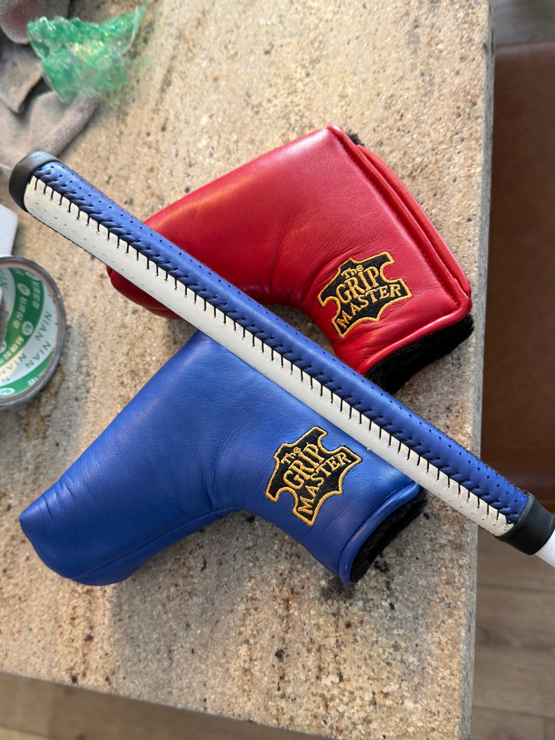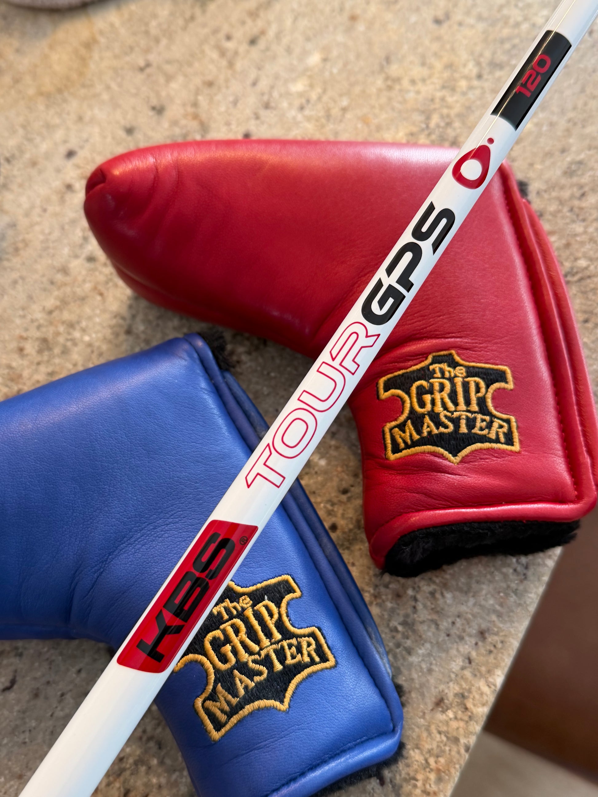 grip is three way stitched leather (red/white/blue) matching from the Gripmaster. These will properly protect a finish like this. On a gloss white KBS GPS graphite shaft for a little added bonus. Sharp setup- I don’t do these often.