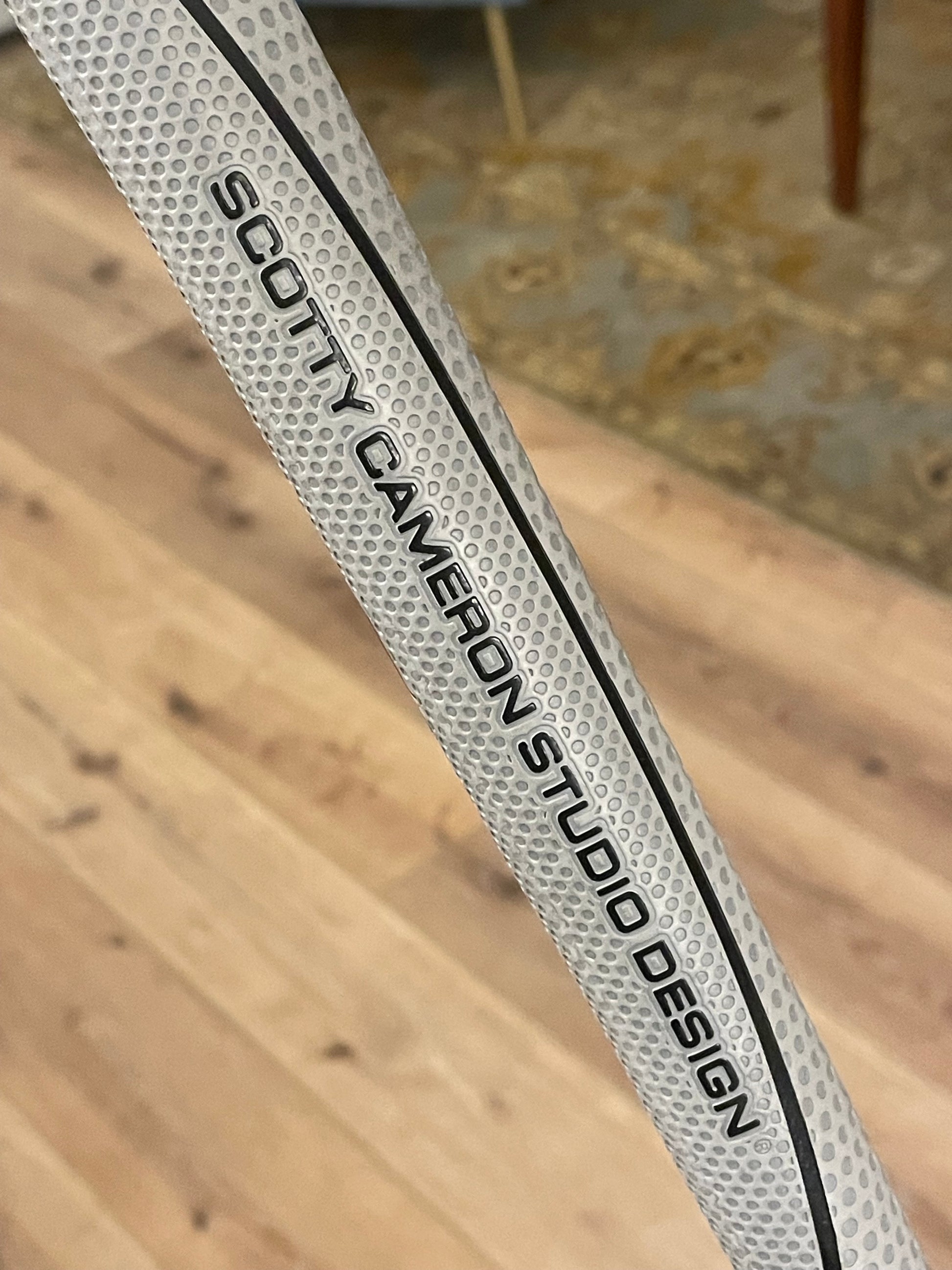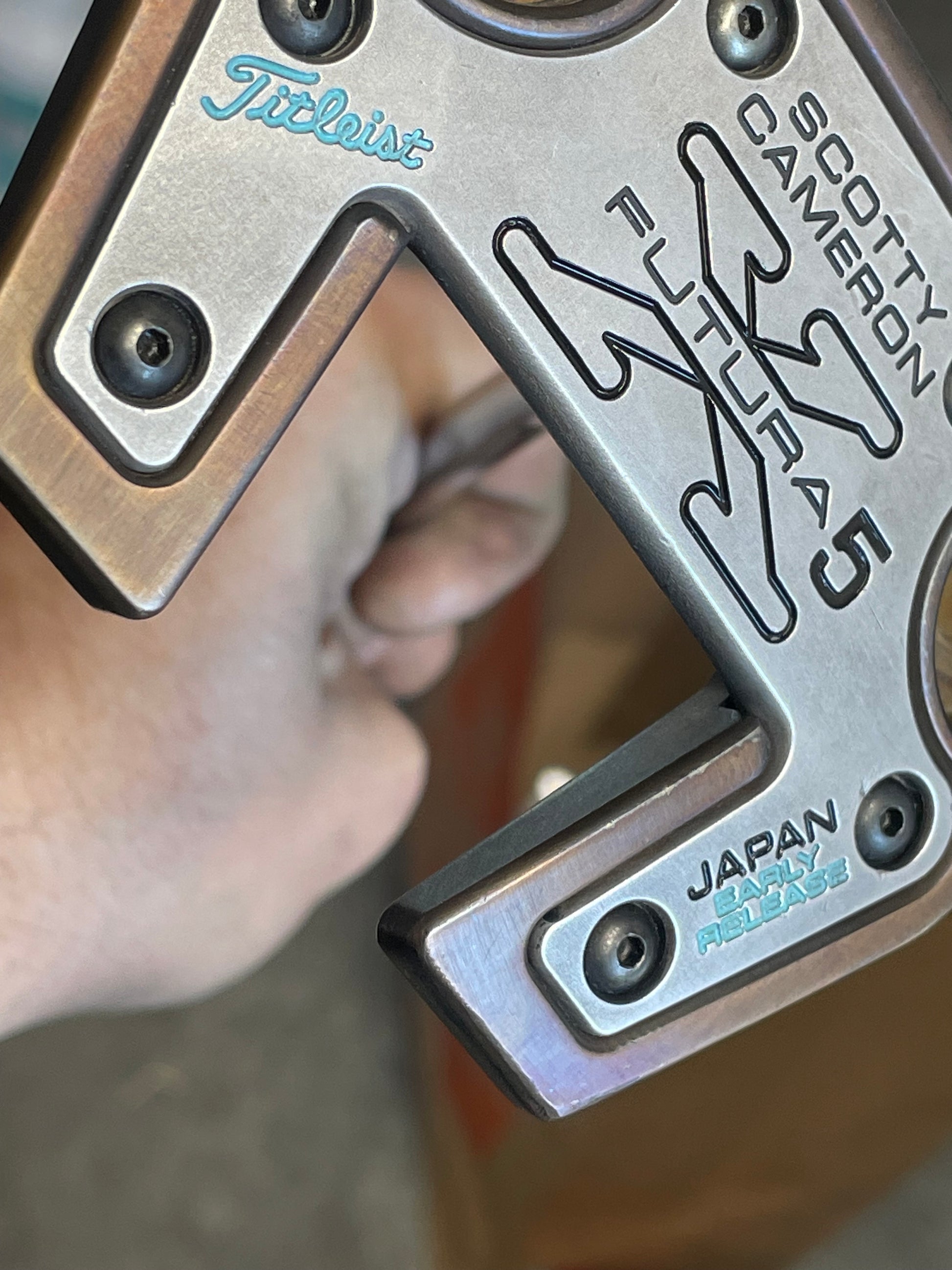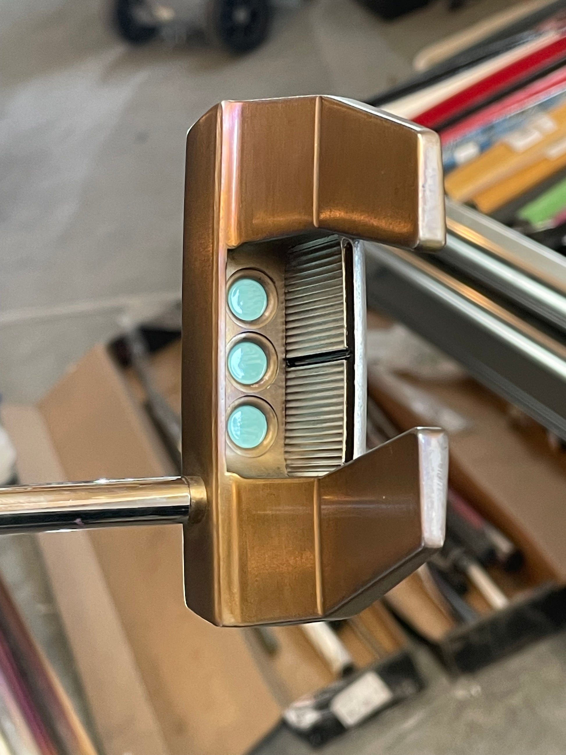 Putter was torched, satin blasted plate, tiffany paint, black acrylic site lines. I didn't paint the lines on the top of the body... to keep it a bit more simple. I will if you'd rather!