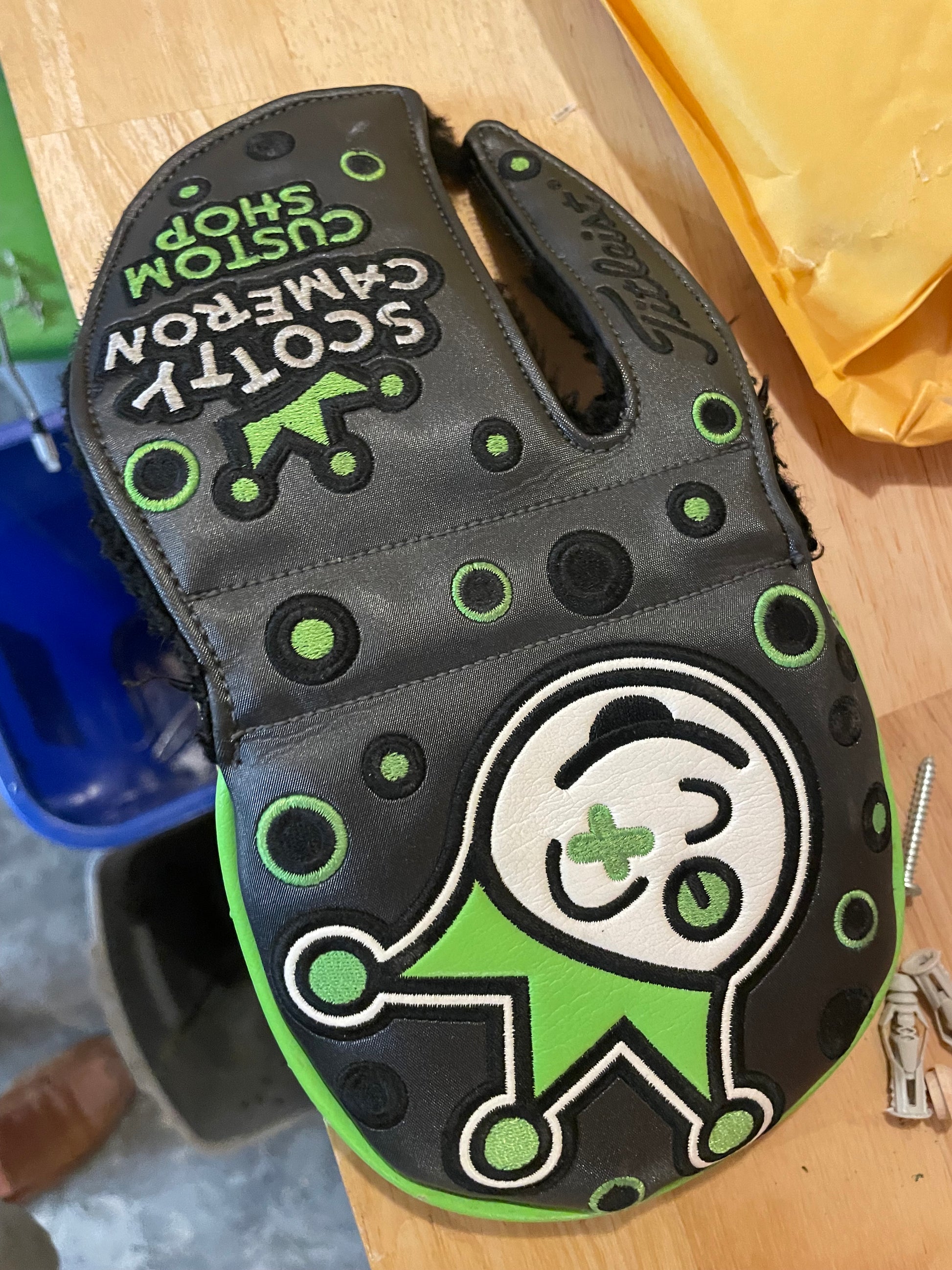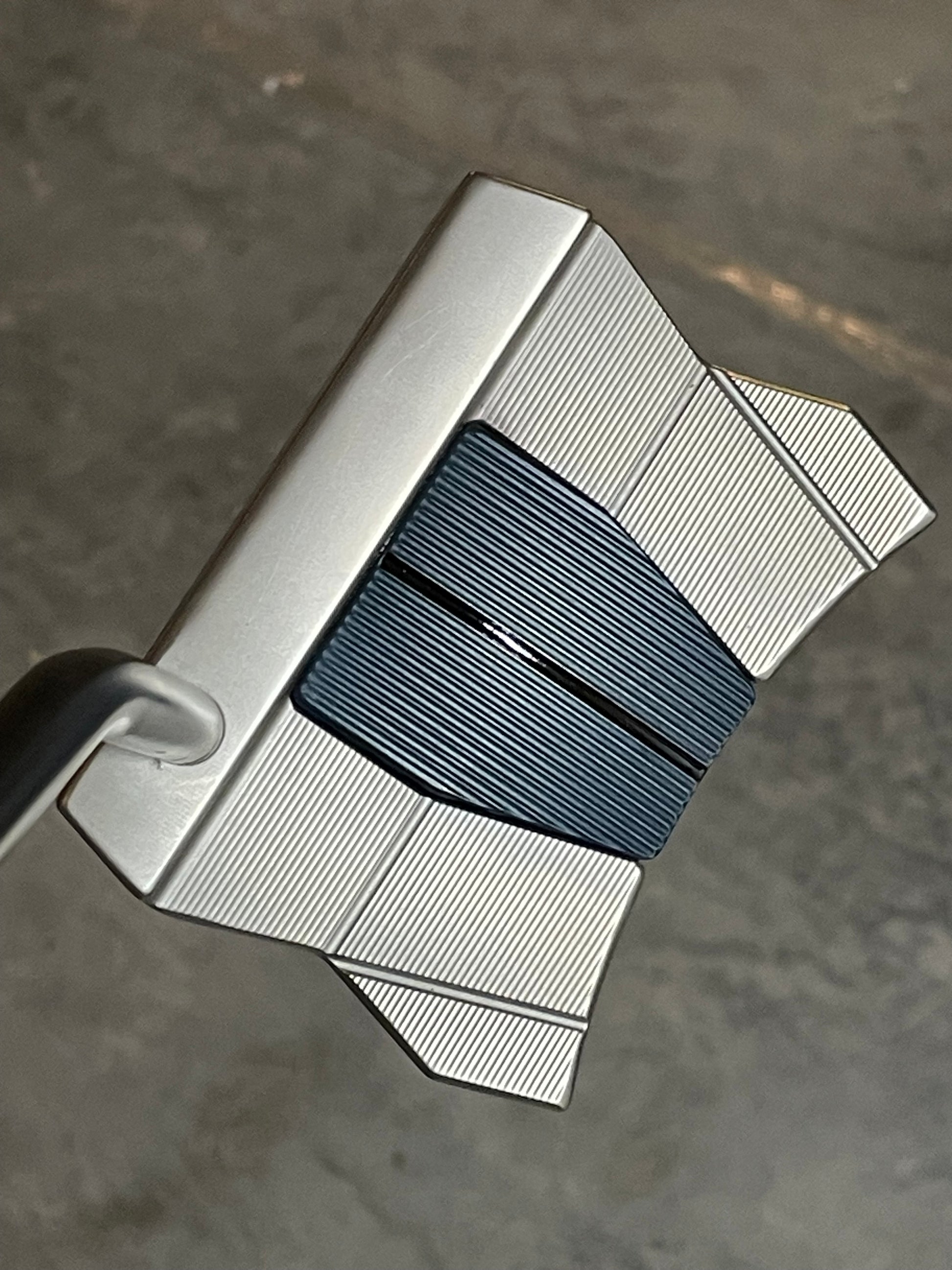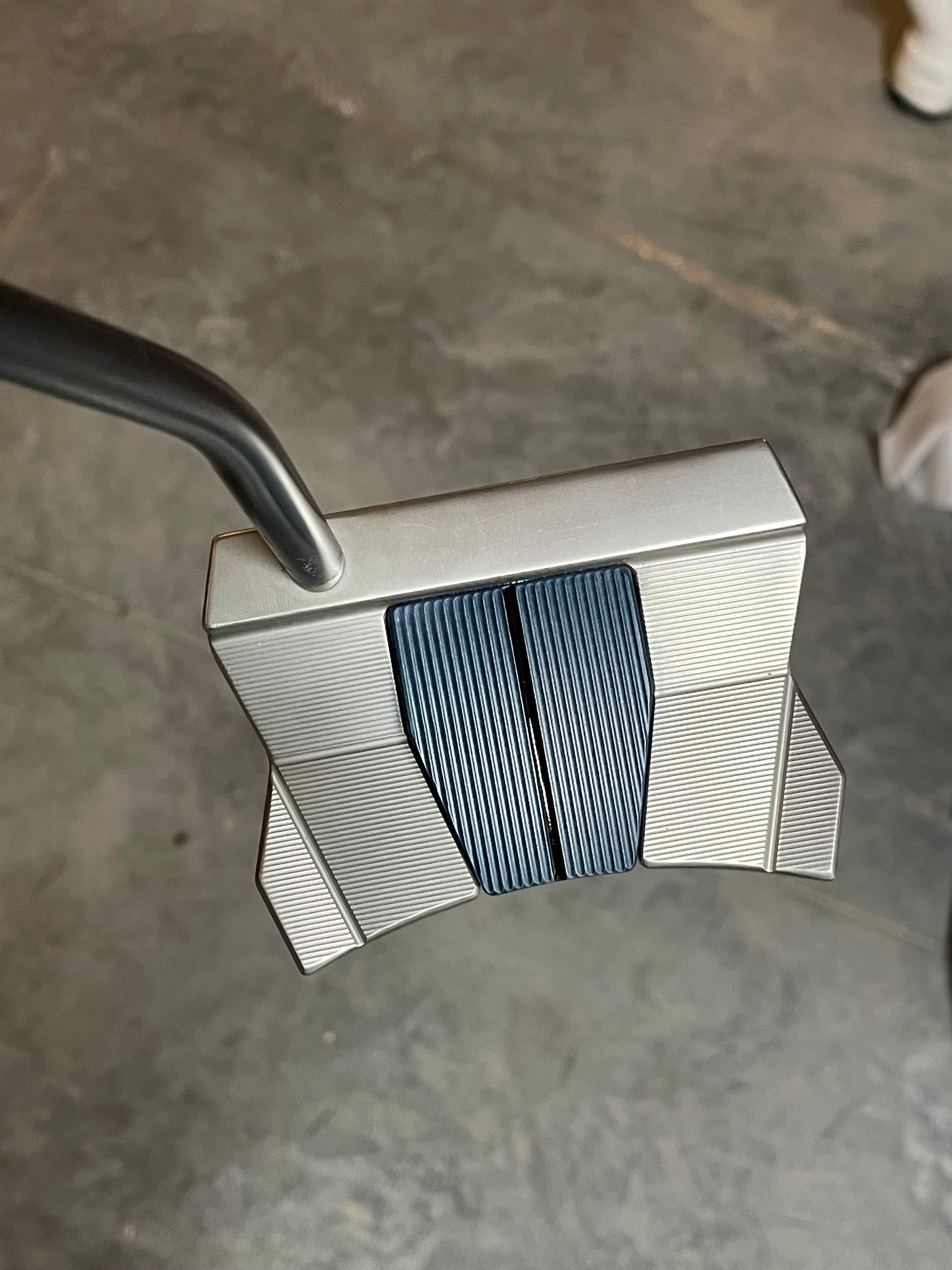This is a sweet one! A MOTO Monday putter, originally, I took it in and completely rebuilt it. New satin black CT Tour from KBS, and a new lime kangaroo paddle grip from the Gripmaster. These are amazing. Mystic blue centerplate, and a tour satin body, this thing looks super cool!