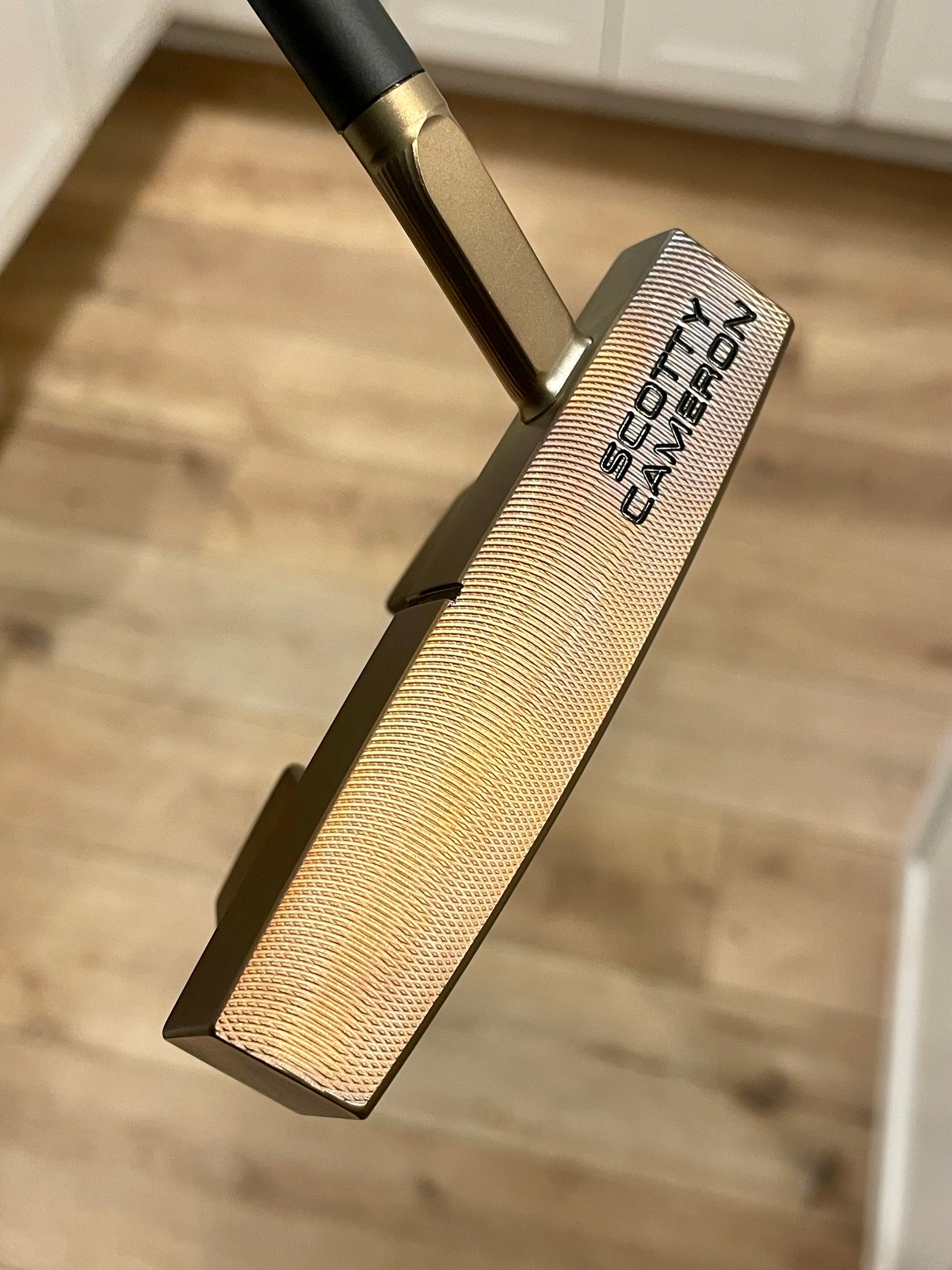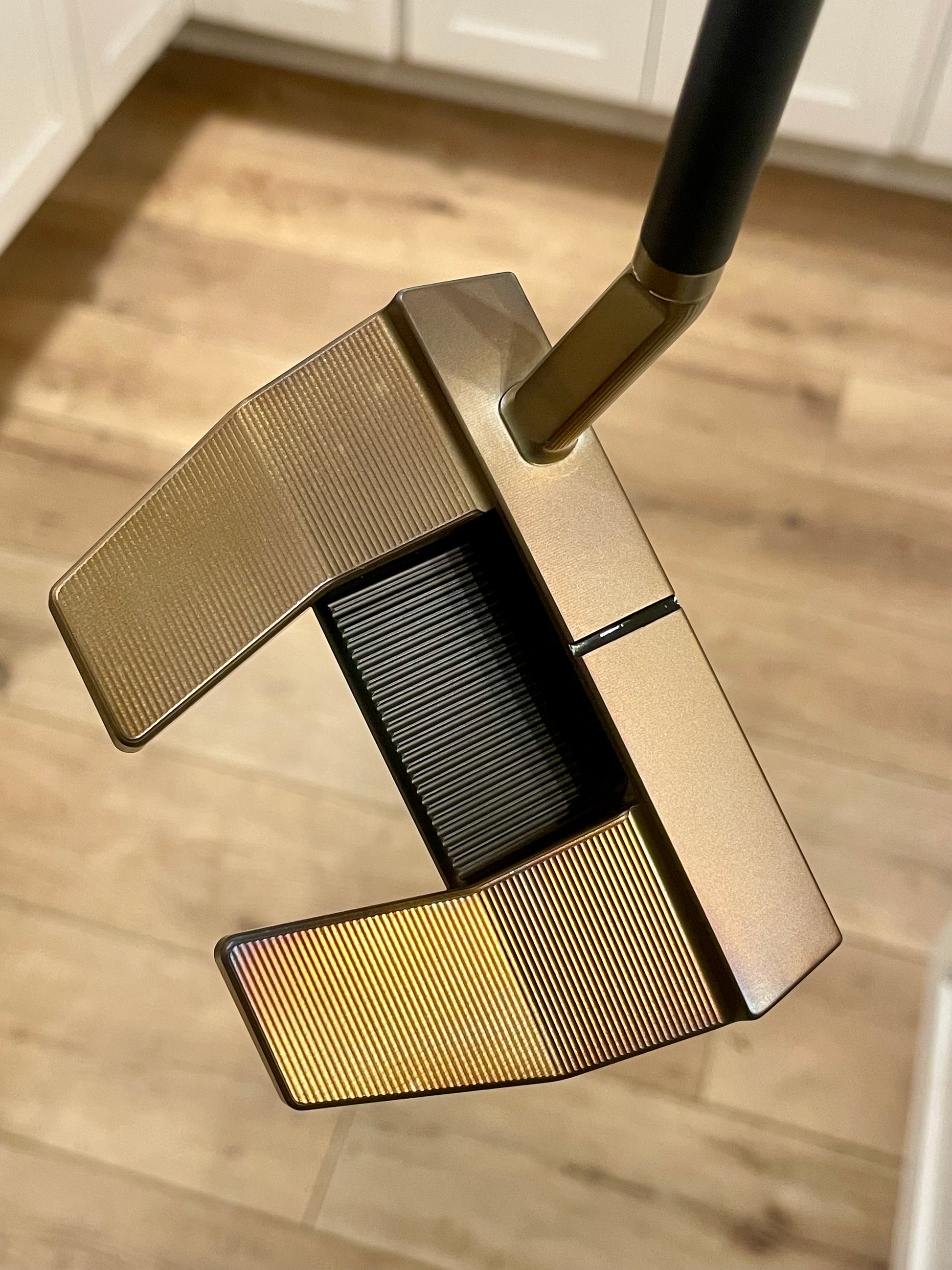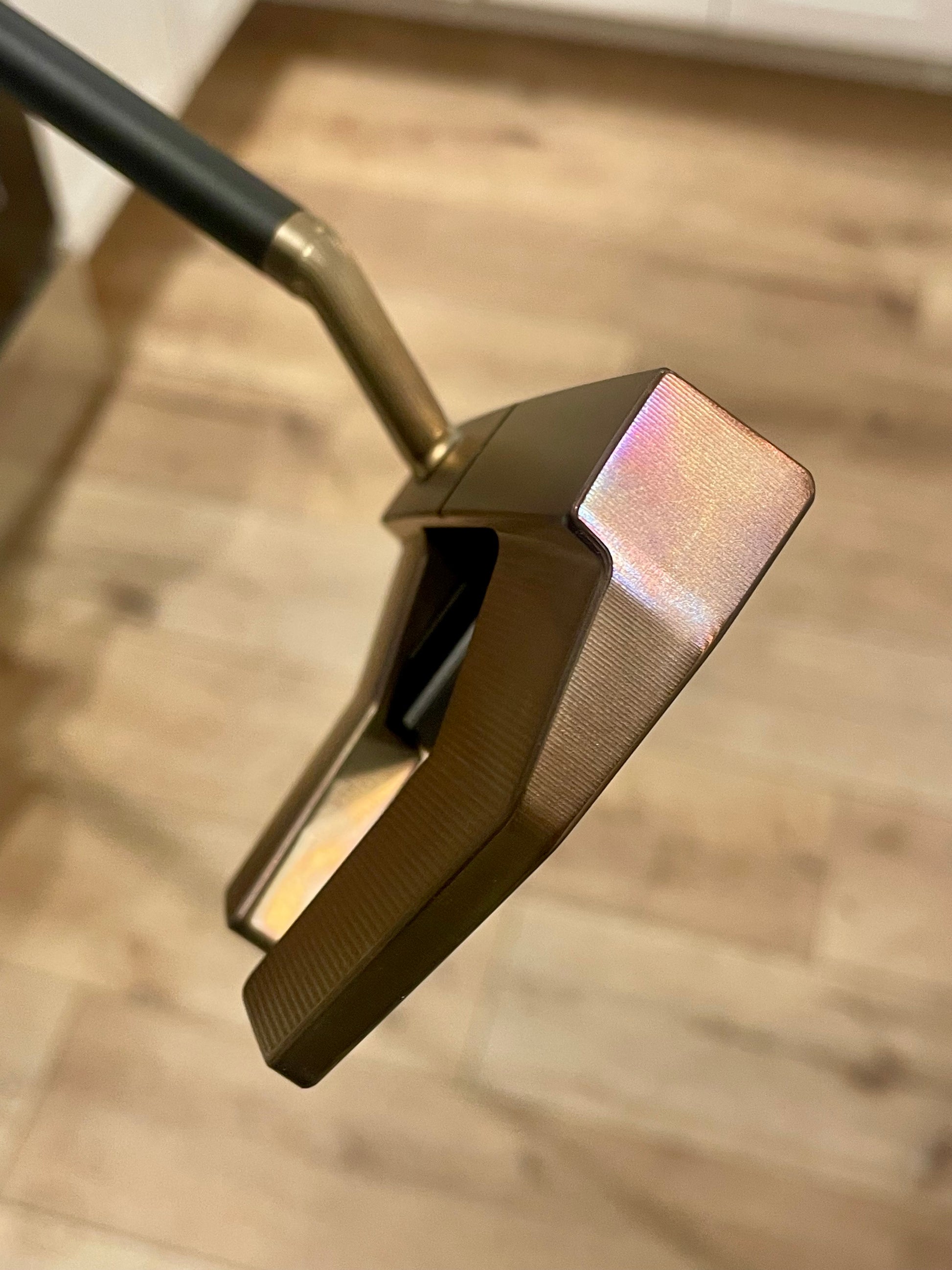 Torched weights match the body. New/stock baseplate. So you can enjoy the durability of Scotty's black PVD, and my art at once. These things are absolutely stunning. Nobody takes the time to torch putters like this, that I have seen. It's a lot of work. Black baseplate screws tie it all together- there is NO chrome on this putter. Zero.