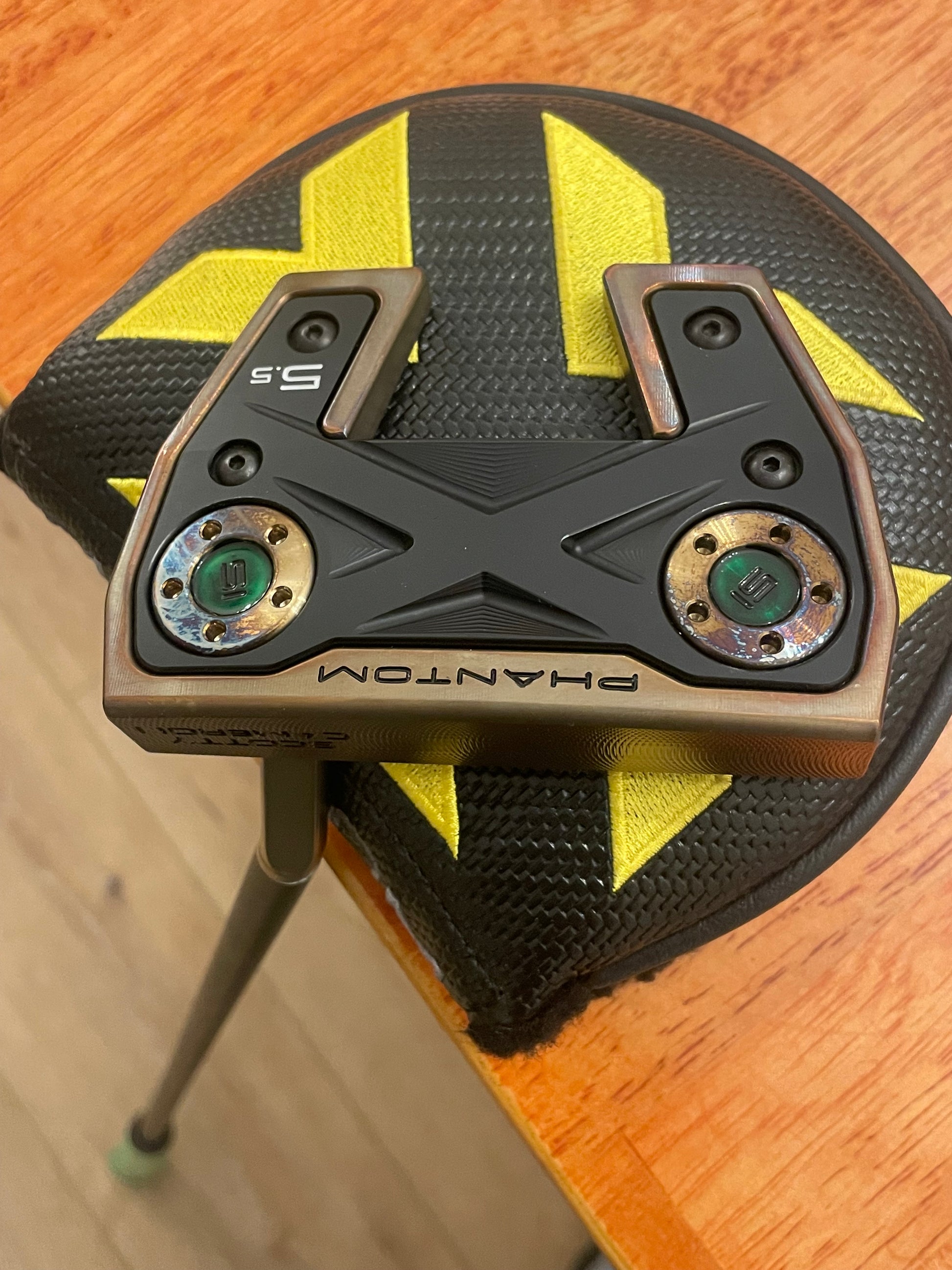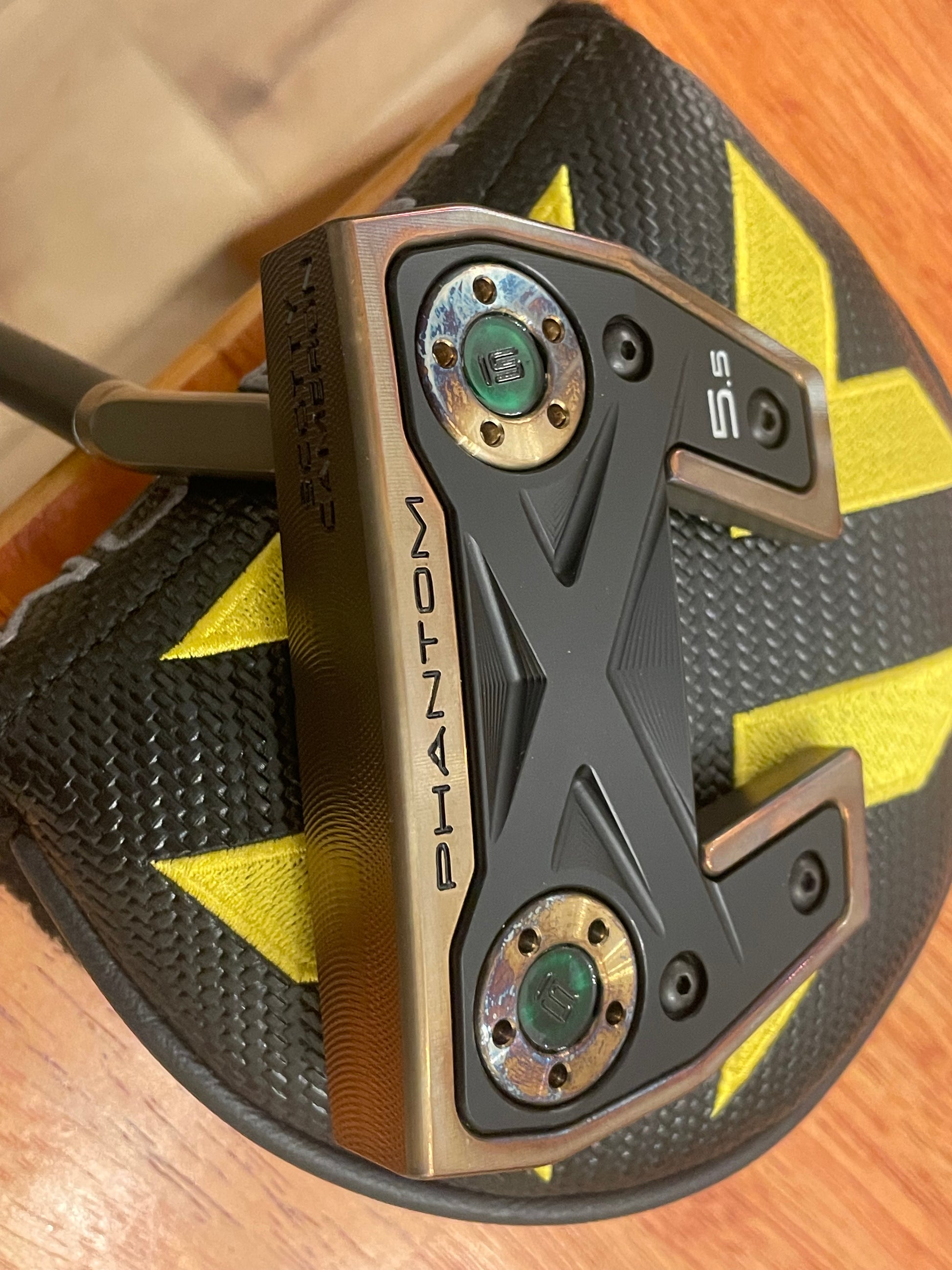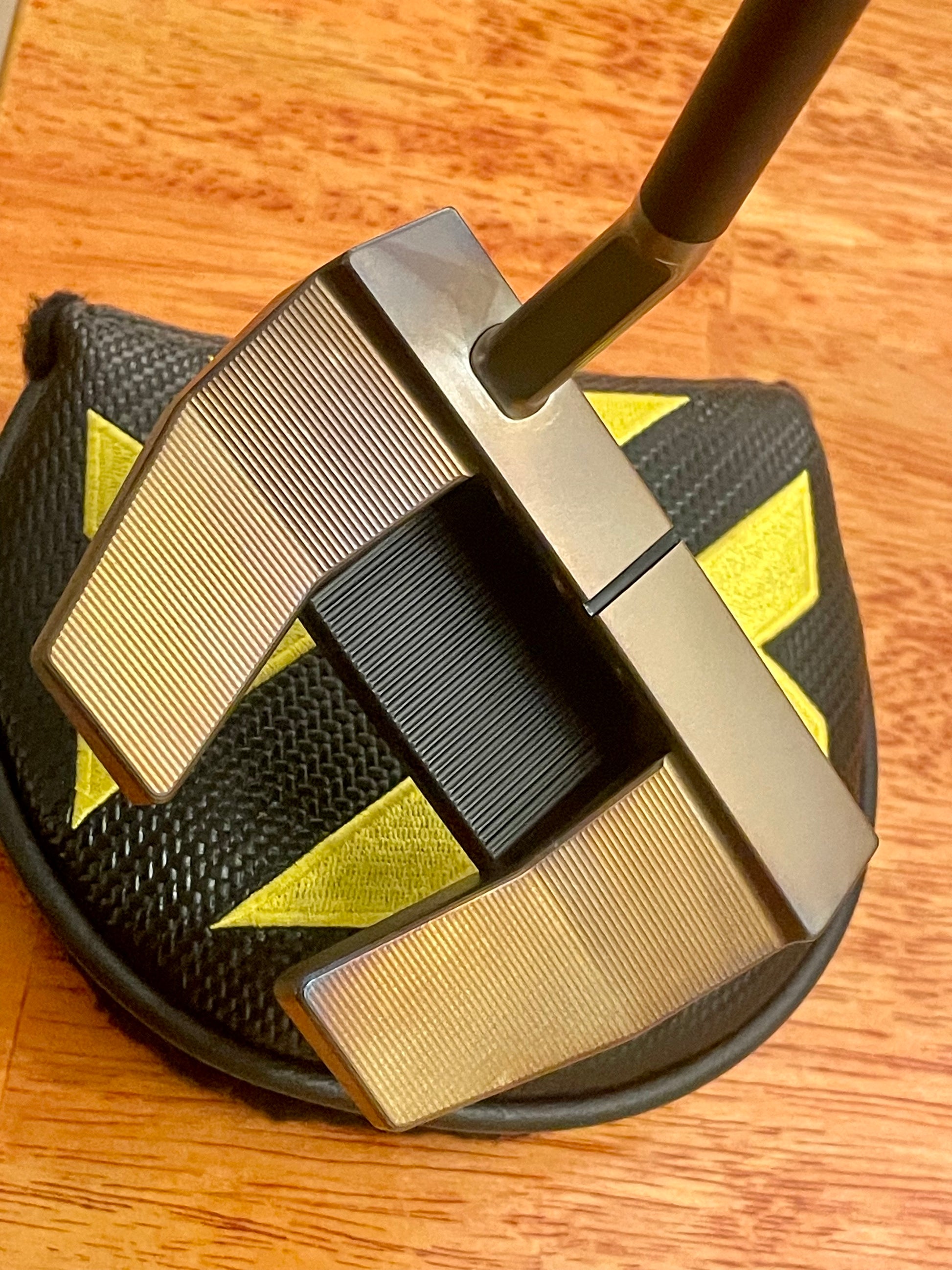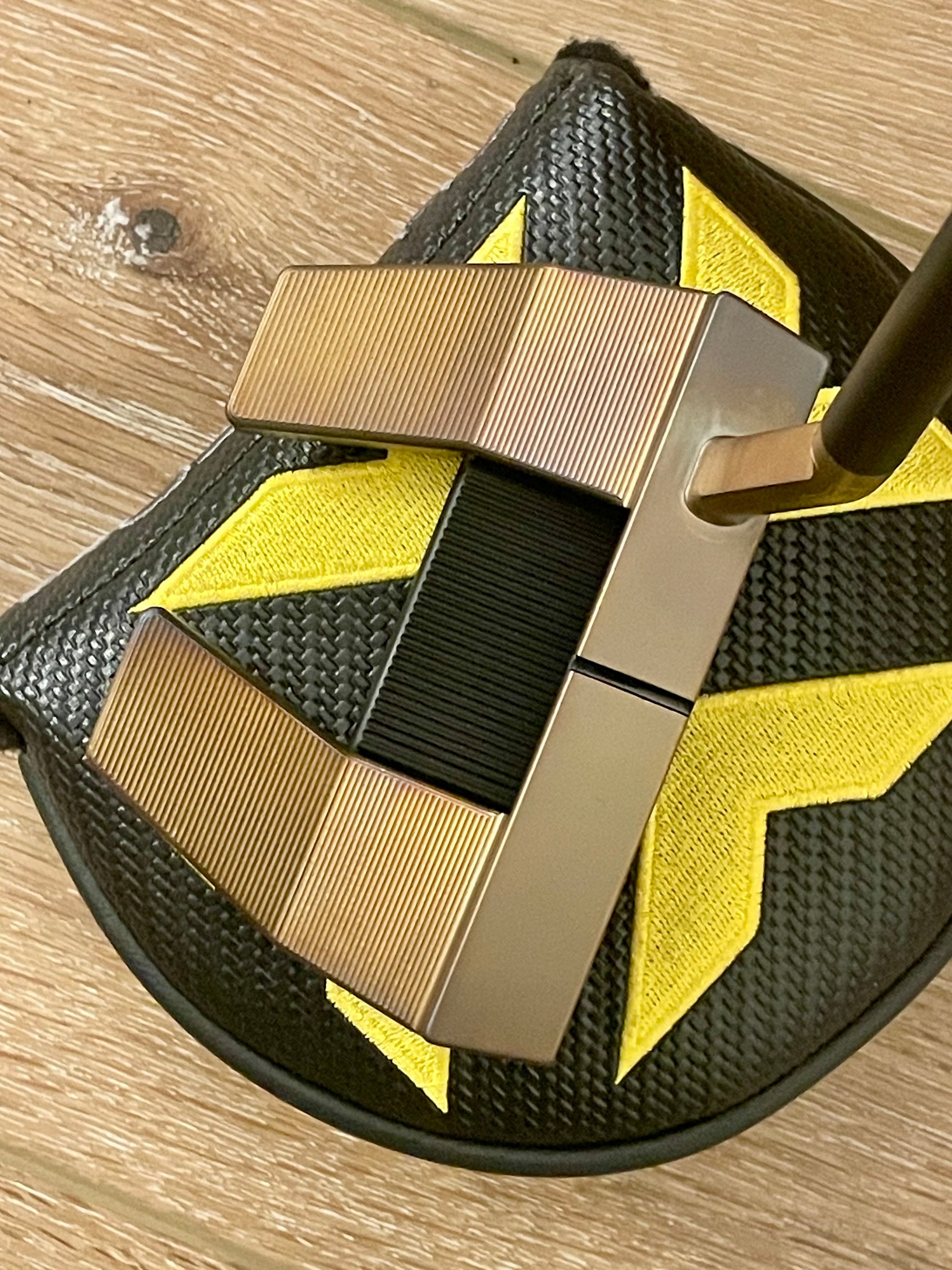 Torched weights match the body. New/stock baseplate. So you can enjoy the durability of Scotty's black PVD, and my art at once. These things are absolutely stunning. Nobody takes the time to torch putters like this, that I have seen. It's a lot of work. Black baseplate screws tie it all together- there is NO chrome on this putter. Zero.