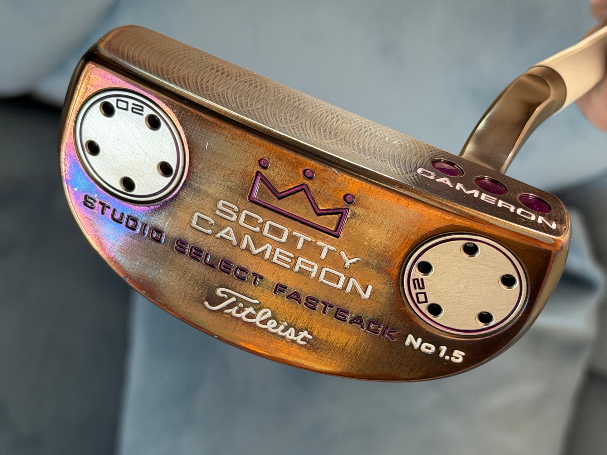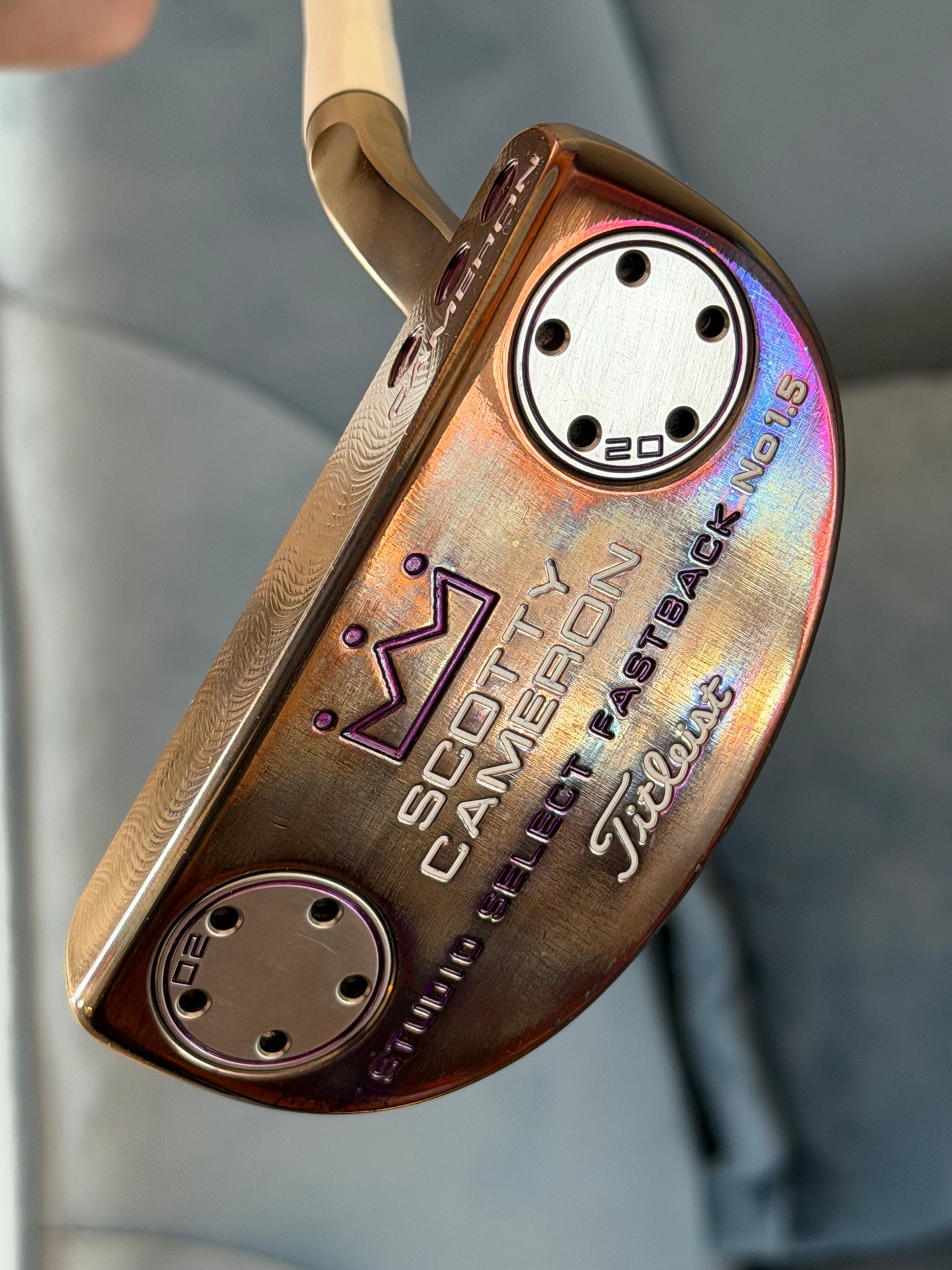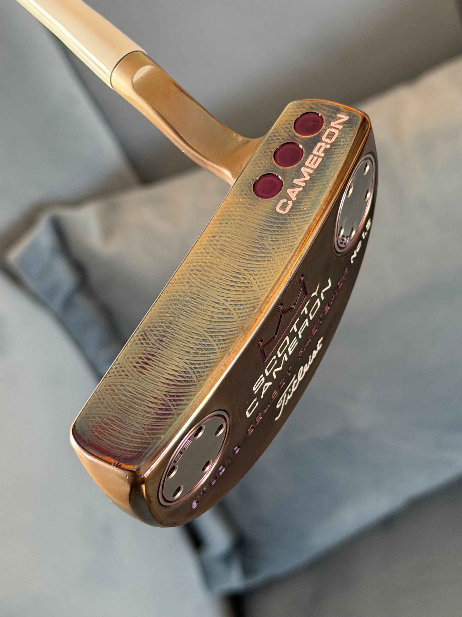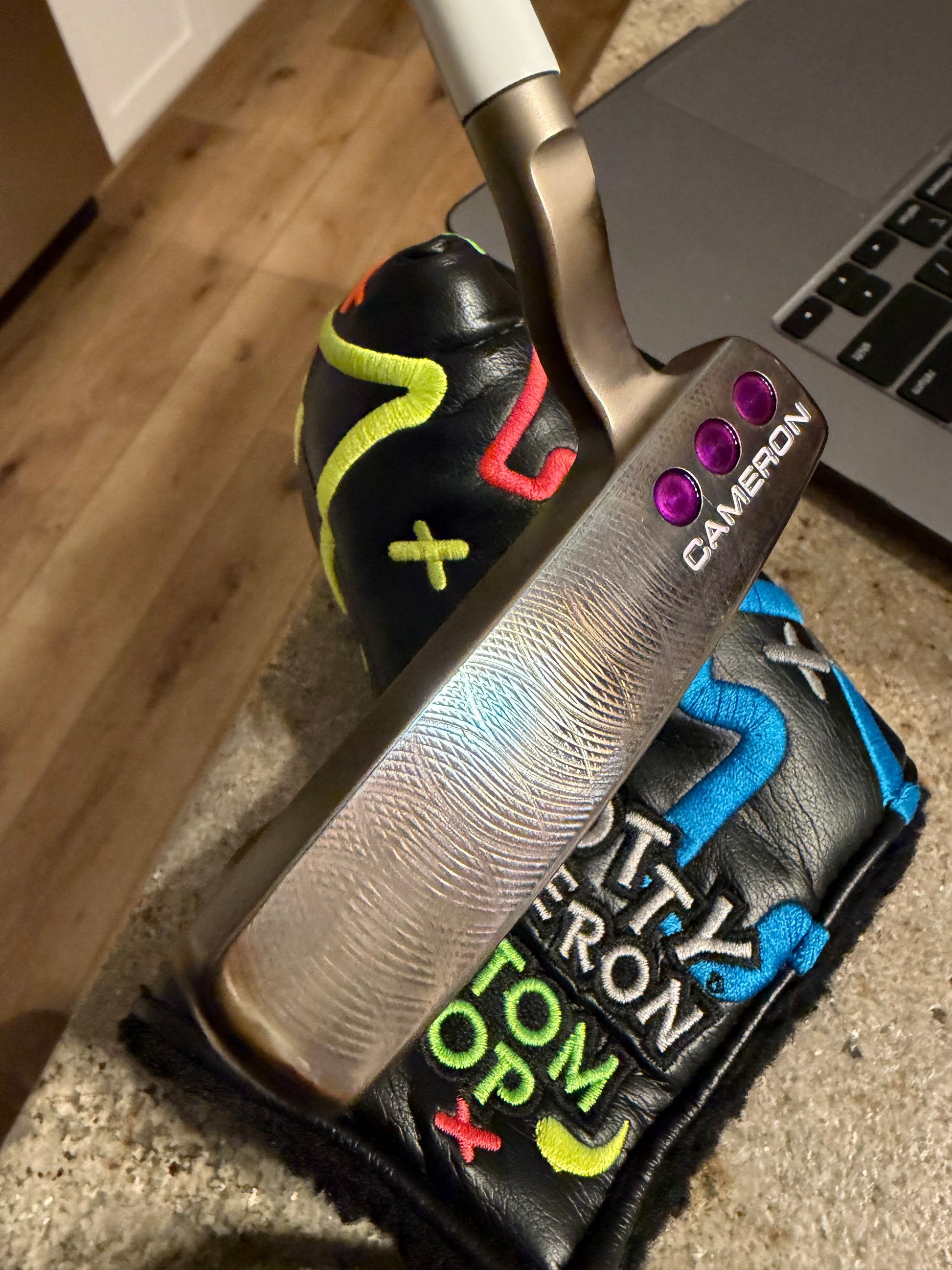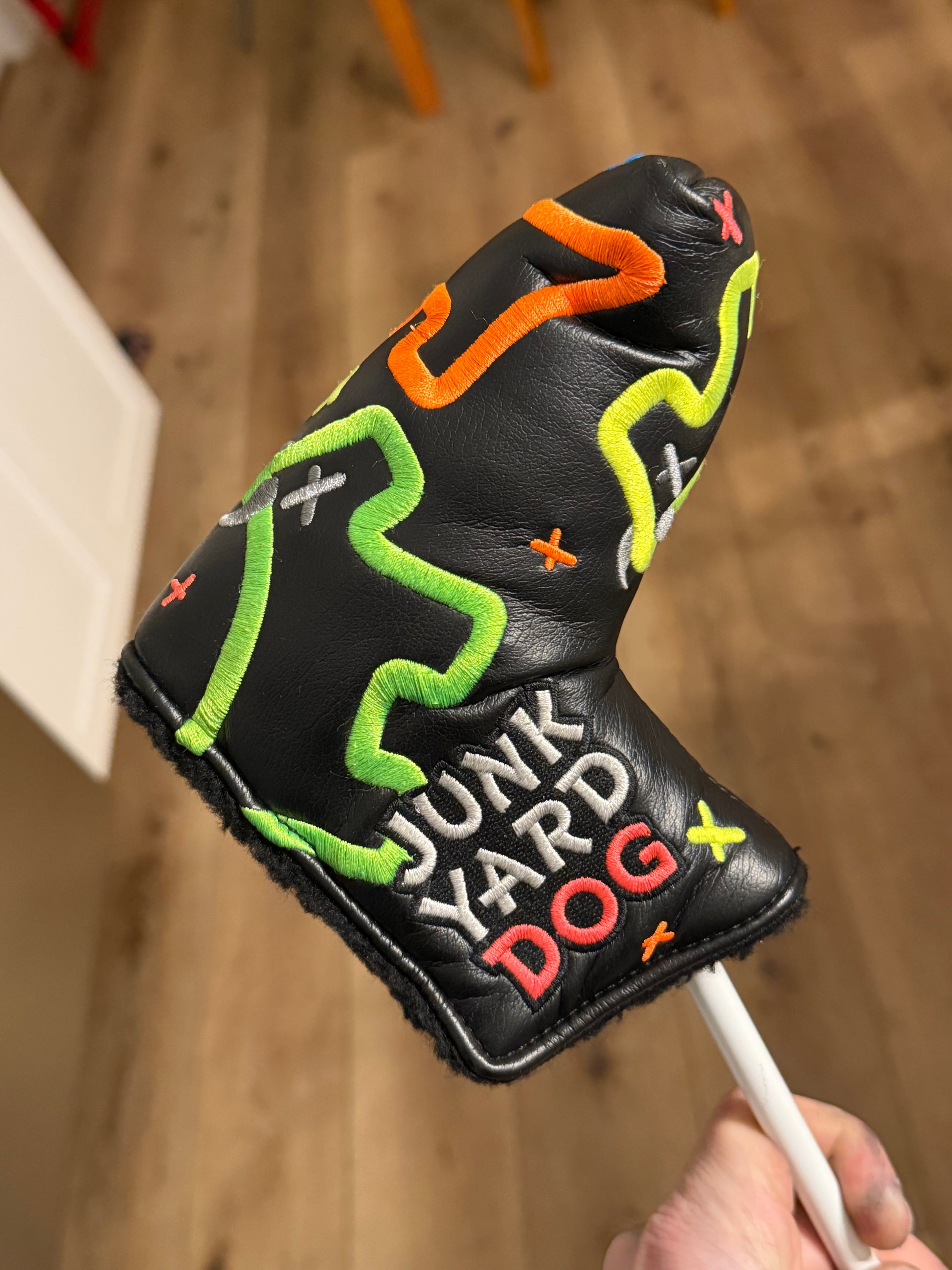 This is a sweet one for a collector. You won’t see one that looks like this. Proper oil can finish. Satin blasted on top for limited distraction over the ball. Polished everywhere else for awesome color. mint junkyard dog cover in the correct size. New dancing cord grip in black.